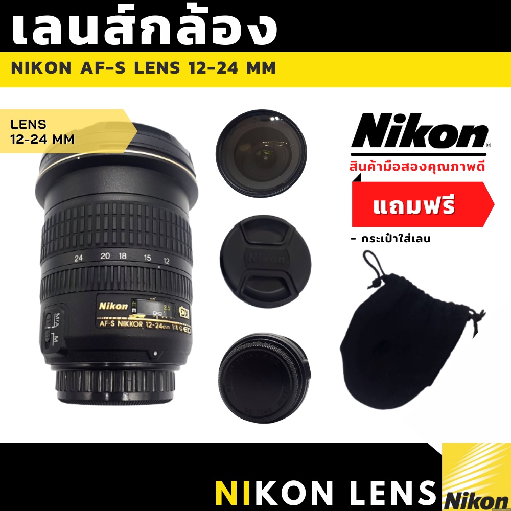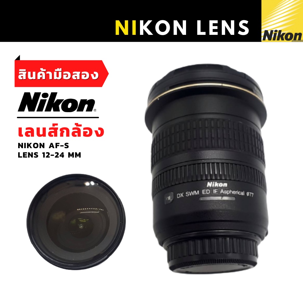 เลนส์กล้องถ่ายรูป Nikon AF-S DX Zoom-NIKKOR 12-24 มม. ค่า F : ช่องรูรับแสง : F/4G มือสองสภาพดี ของแท้ 100%