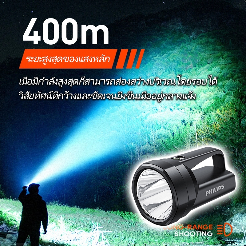 PHILIPS ไฟฉายสูง ปรับแสงได้ 5 ระดับ โหมดแสงด้านข้าง ไฟแคมป์ปิ้ง ไฟฉายความเข้มสูง มุมกว้าง LED Flashlight SFL3121