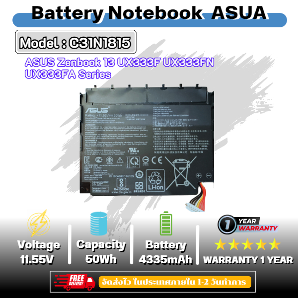 (ส่งฟรี ประกัน 1 ปี)แบตเตอรี่ Asus ZenBook 13 UX333 UX333F UX333FN UX333FA Series C31N1815 ของแท้