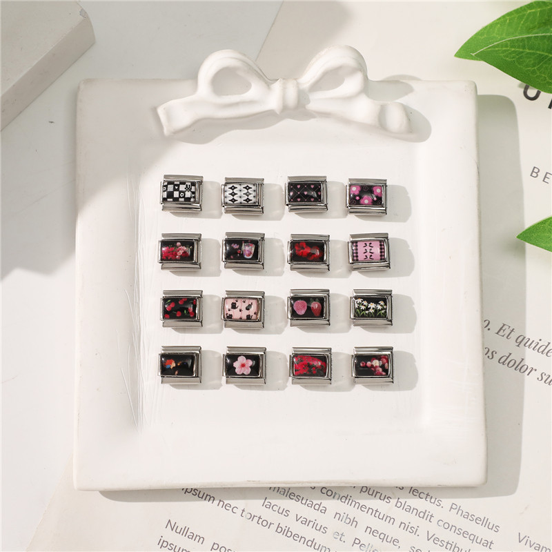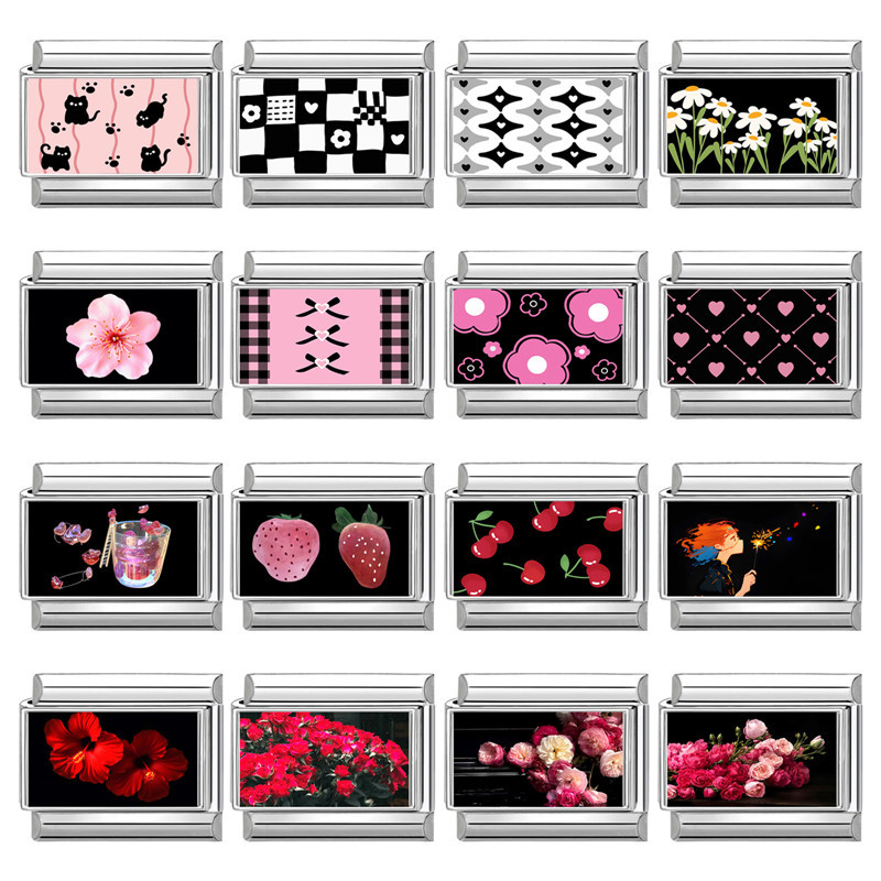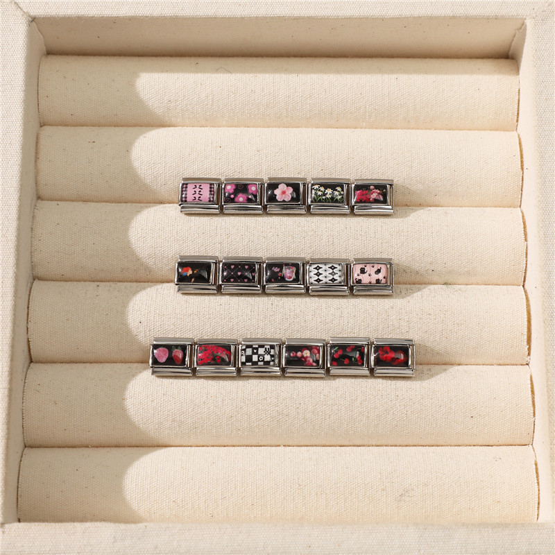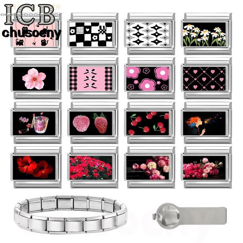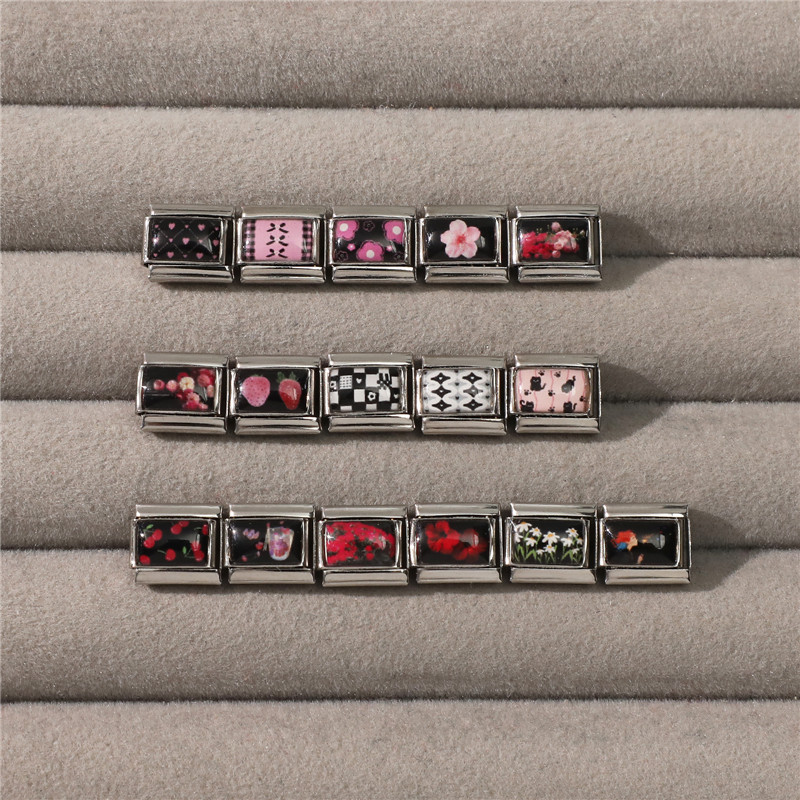 (สไตล์ภาพถ่าย) สีดําเย็นสีชมพูอิตาลีสร้อยข้อมือเสน่ห์พอดี9มิลลิเมตรสร้อยข้อมือสแตนเลส ทําเอง เครื่องประดับทําอุปกรณ์บุคลิกภาพโมดูลสร้อยข้อมือเครื่องประดั