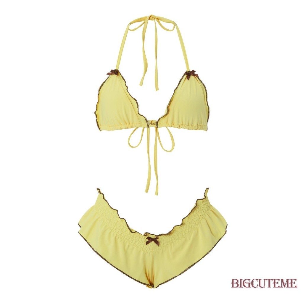 []-ชุดบิกินี่ผู้หญิง 2psc Patchwork แขนกุด Bra และ Frills Thong Bottoms ชุดว่ายน้ําชุดว่ายน้ําชายหาด