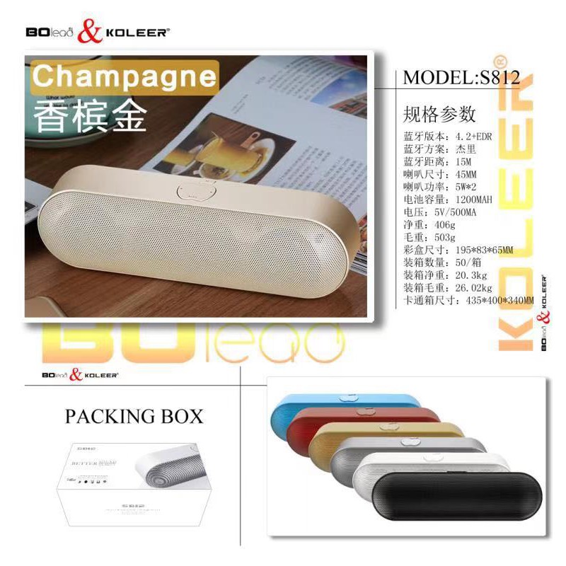 ลำโพง Bluetooth รุ่น S812 ของแท้ เสียงดี เบสแน่น พกพาได้