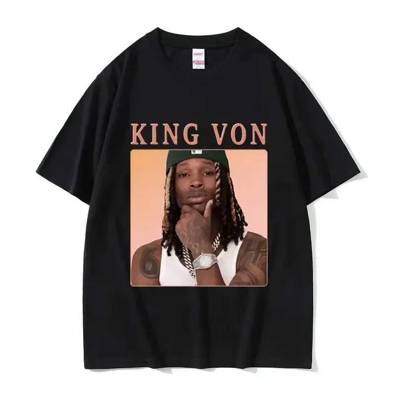 Rapper K-King Von Vintage Graphic เสื้อยืดผู้ชาย Hip Hop เสื้อยืดผ้าฝ้ายขนาดใหญ่ Unisex Gothic เสื้อยืดแขนสั้น Streetwea