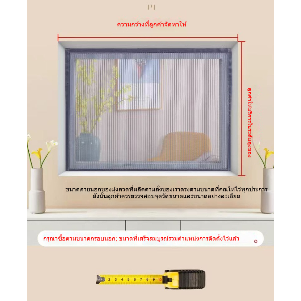 หน้ากากกันยุงแบบมีแม่เหล็กติดได้ ไม่ต้องเจาะรู ง่ายต่อการติดตั้ง สามารถถอดออกได้ ปิดช่องว่างได้ดี สินค้ามีคุณภาพ