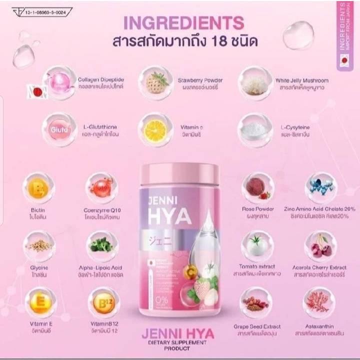 (ซื้อ 1แถม1 ) JENNI HYA ผลิตภัณฑ์เสริมอาหาร เจนนี่ไฮยา เจนนิ ไฮยารูลอน 1 กระปุก 50 กรัม