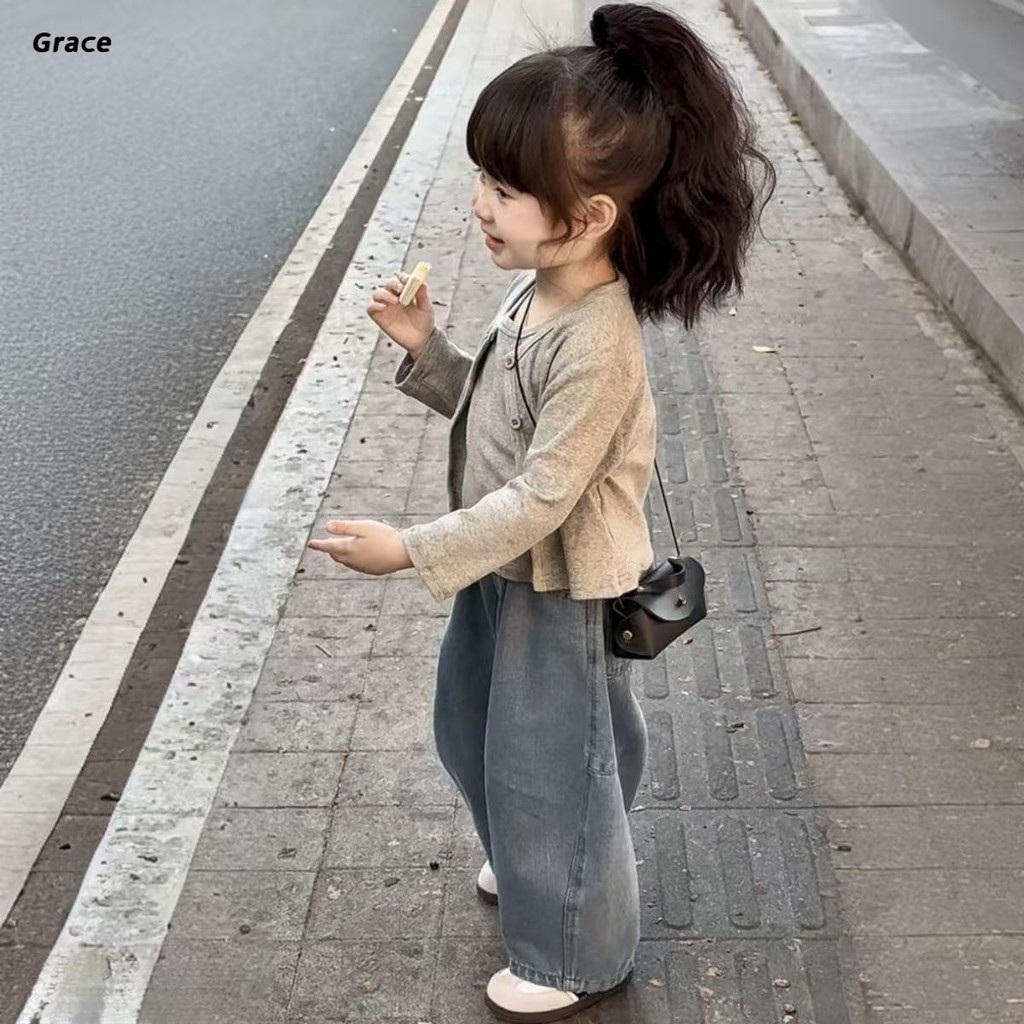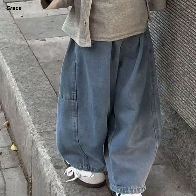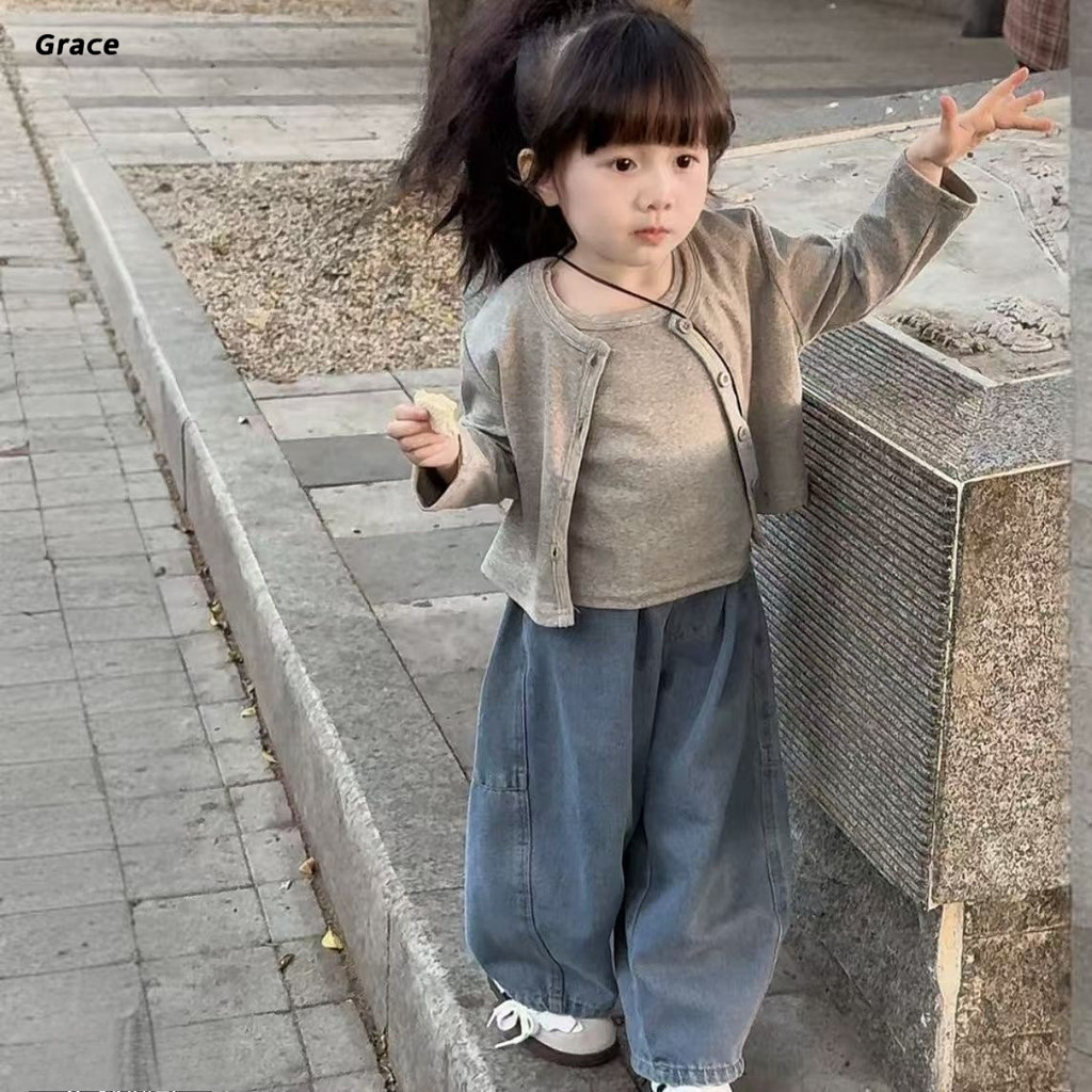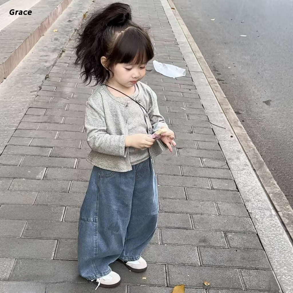 [Grojoy] (คลังสินค้าพร้อม) ฤดูใบไม้ร่วงสาวกางเกงขากว้าง 2025 แฟชั่นกางเกงยีนส์ลําลอง GRL148 #