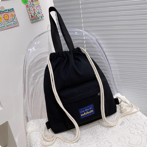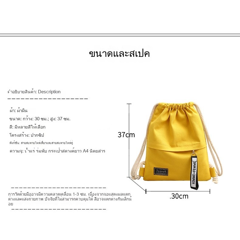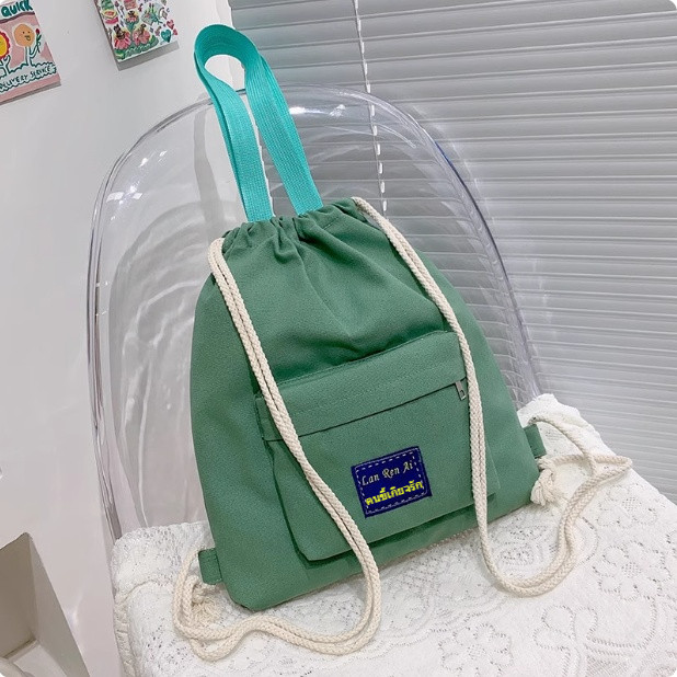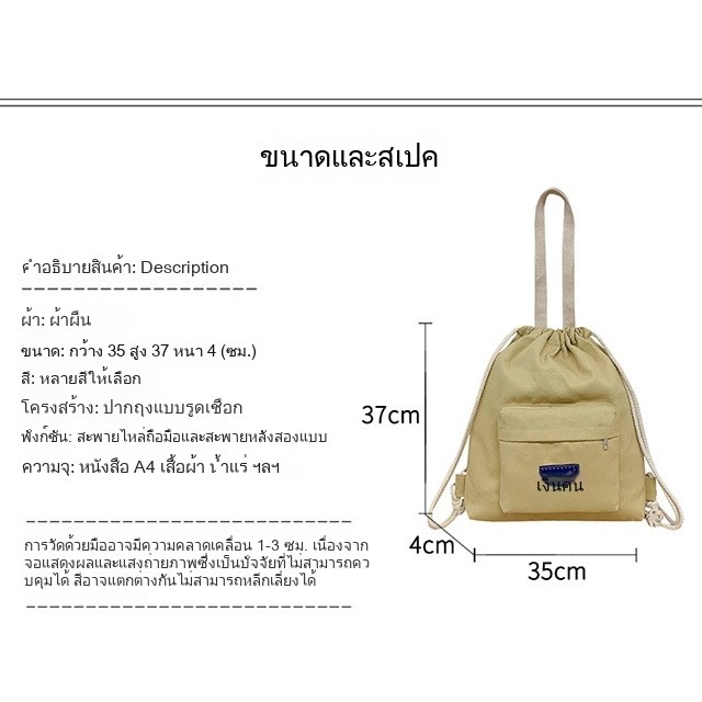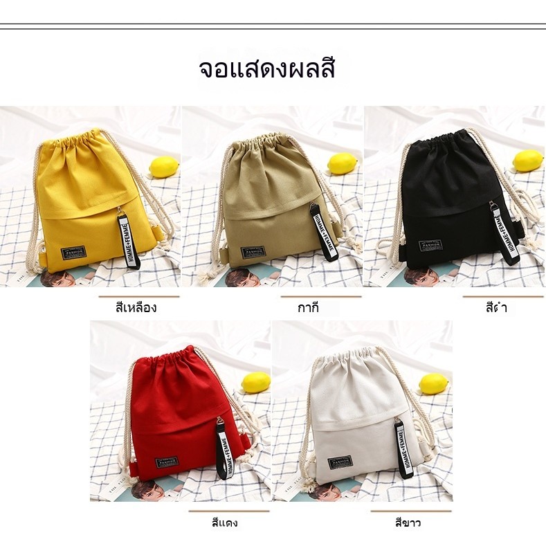 กระเป๋าเป้สะพายหลังผ้าฝ้ายผูกปากถุง น้ำหนักเบา สำหรับกีฬาและเรียนพิเศษ