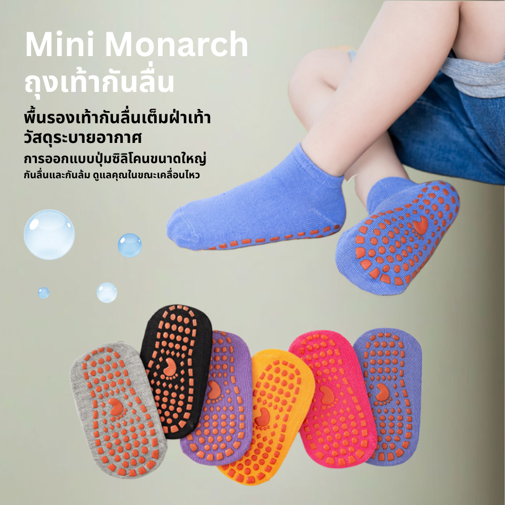 Mini Monarch | ถุงเท้ากันลื่น 6 สี สำหรับเด็ก ใส่สบายทุกก้าว (เหมาะสำหรับอายุตั้งแต่ 3-12 ปี)