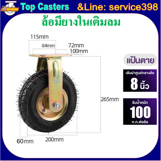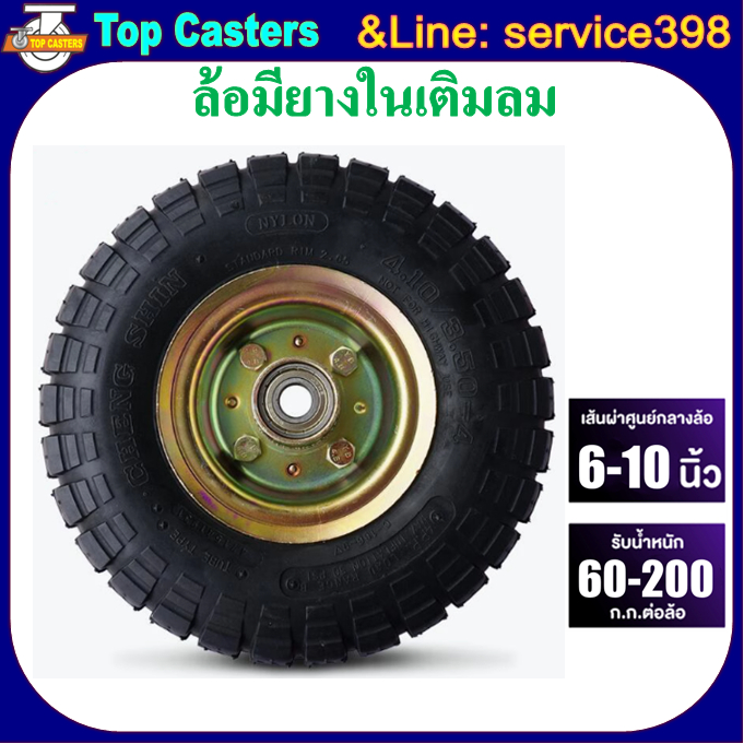 121-RB ล้อลม ล้อสูบลม แป้นตาย-หมุน ขนาดล้อ 6นิ้ว 8นิ้ว 10นิ้ว ล้อมียางในเติมลม