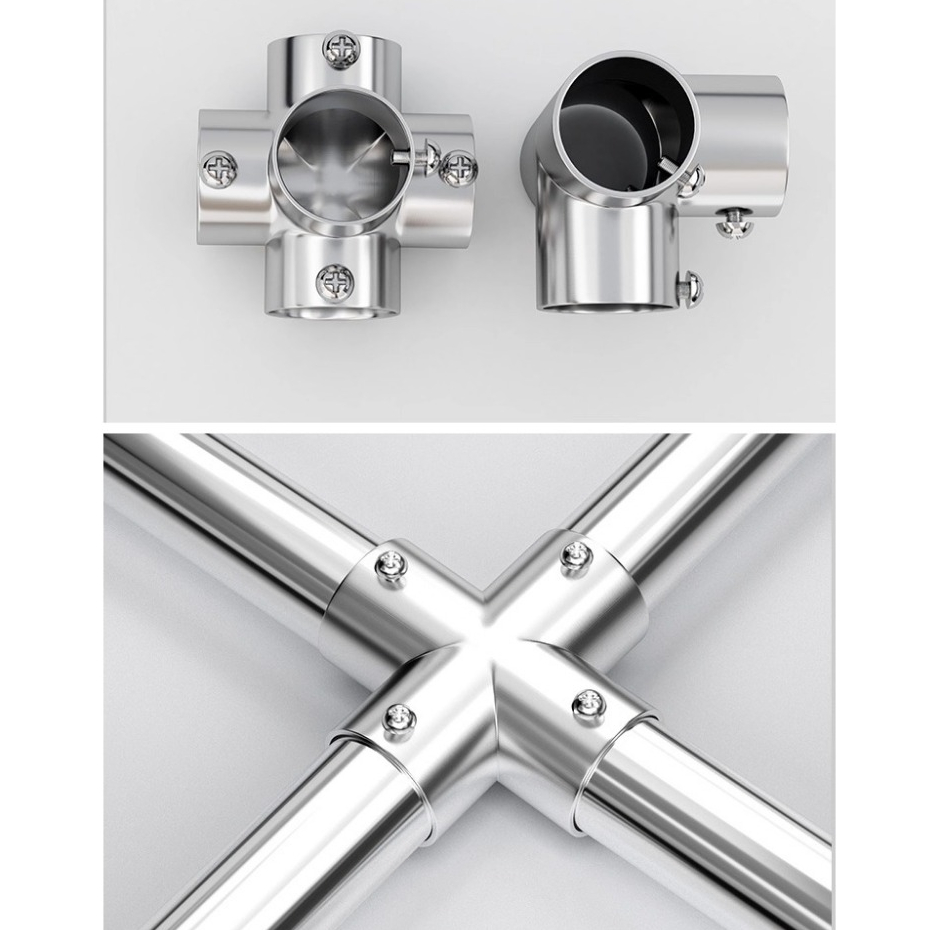 ชิ้นส่วนยึดข้อต่อท่อสแตนเลส ท่อกลม ข้อต่องอฉาก ข้อต่อสามทางแบบขยาย อุปกรณ์เสริมการยึด