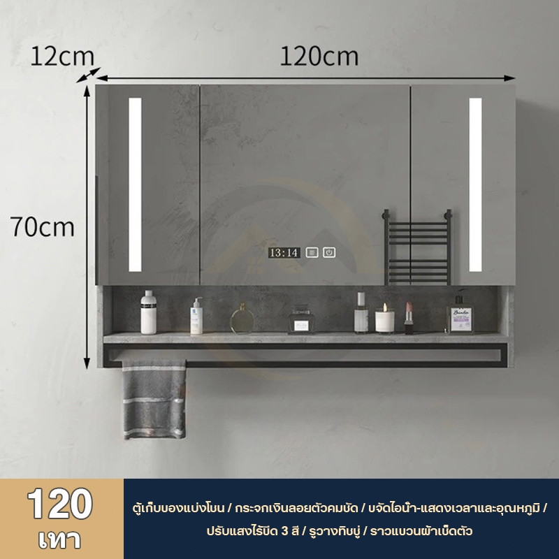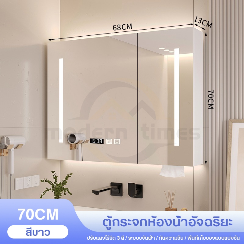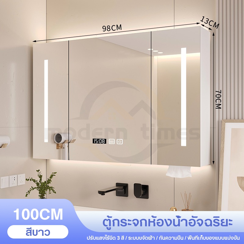 รับประกัน3ปี🔥ตู้กระจกห้องน้ำอัจฉริยะ กระจกห้องน้ำติดผนัง LED กระจกแต่งหน้า ตู้เก็บของในห้องน้ำ ทัชสกรีนกันฝ้ากันน้ำ D