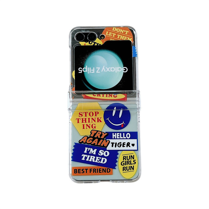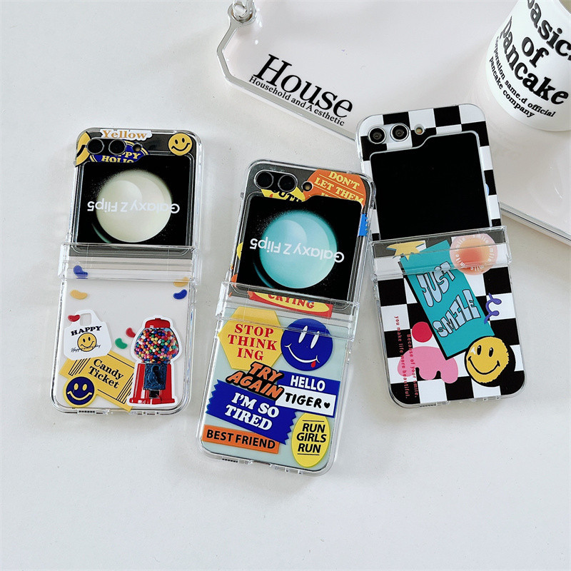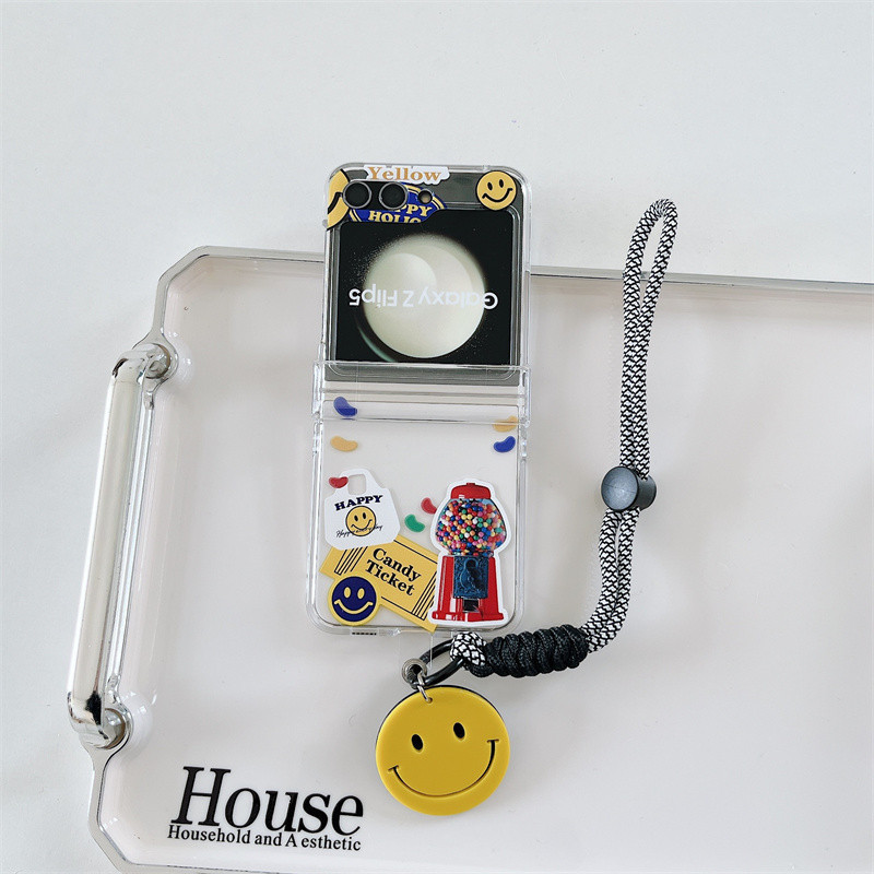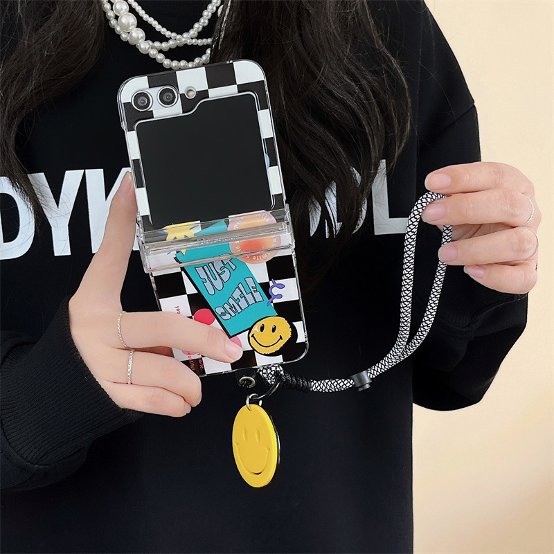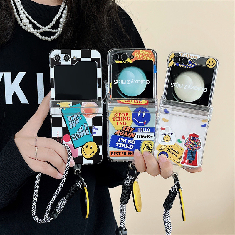 Samsung Z Flip 6/5/4/3 Smile Face 3-in-1 Hard เคสอะคริลิคใสไนลอนพวงกุญแจ Lanyard สายคล้องโทรศัพท์สําหรับ Galaxy Z Flip 6 Flip 5 Clear Cover