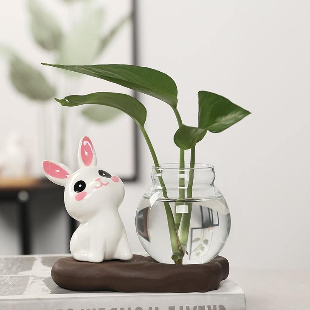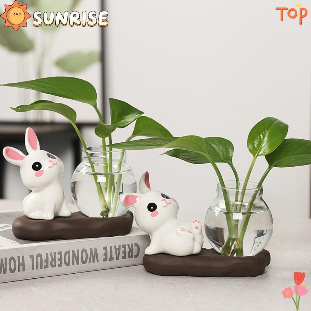 พระอาทิตย์ขึ้น แจกันพืชไฮโดรโปนิกส์,งานฝีมือตกแต่ง กระต่ายน่ารักแจกันแก้วใส,เครื่องประดับที่มีฐานไม้ตกแต่งโต๊ะกระถางดอกไม้ห้ องนั่งเล่น