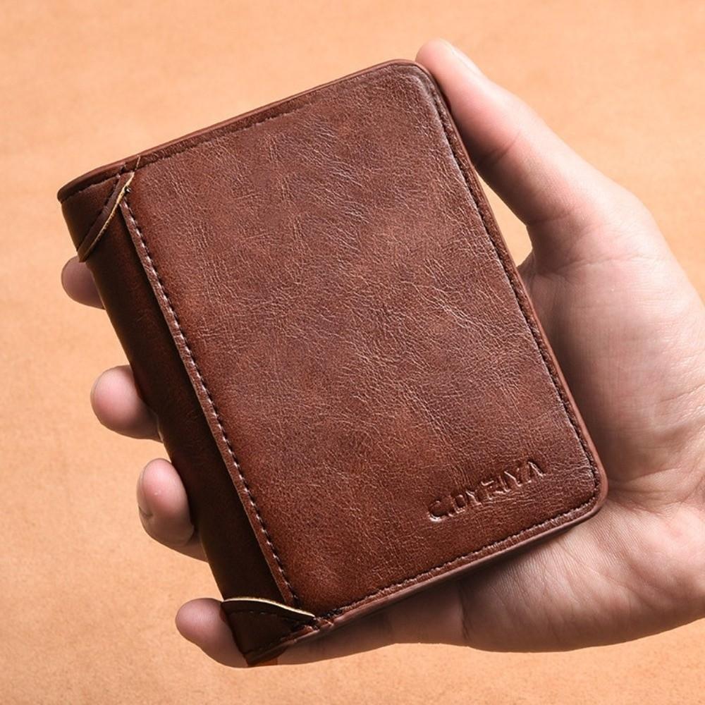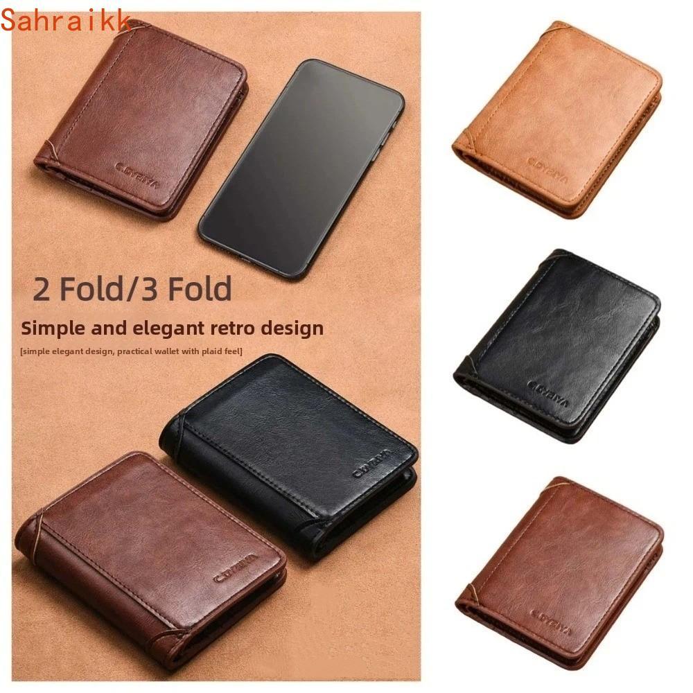 AXIOM กระเป๋าเงินสดกันขโมย,สีทึบ 2 พับ/3 พับกระเป๋าสตางค์สั้นผู้ชาย,แฟชั่น ID Badge Holder PU หนังบัตรเครดิตกรณีชายกระเป๋าหนังกลางแจ้ง