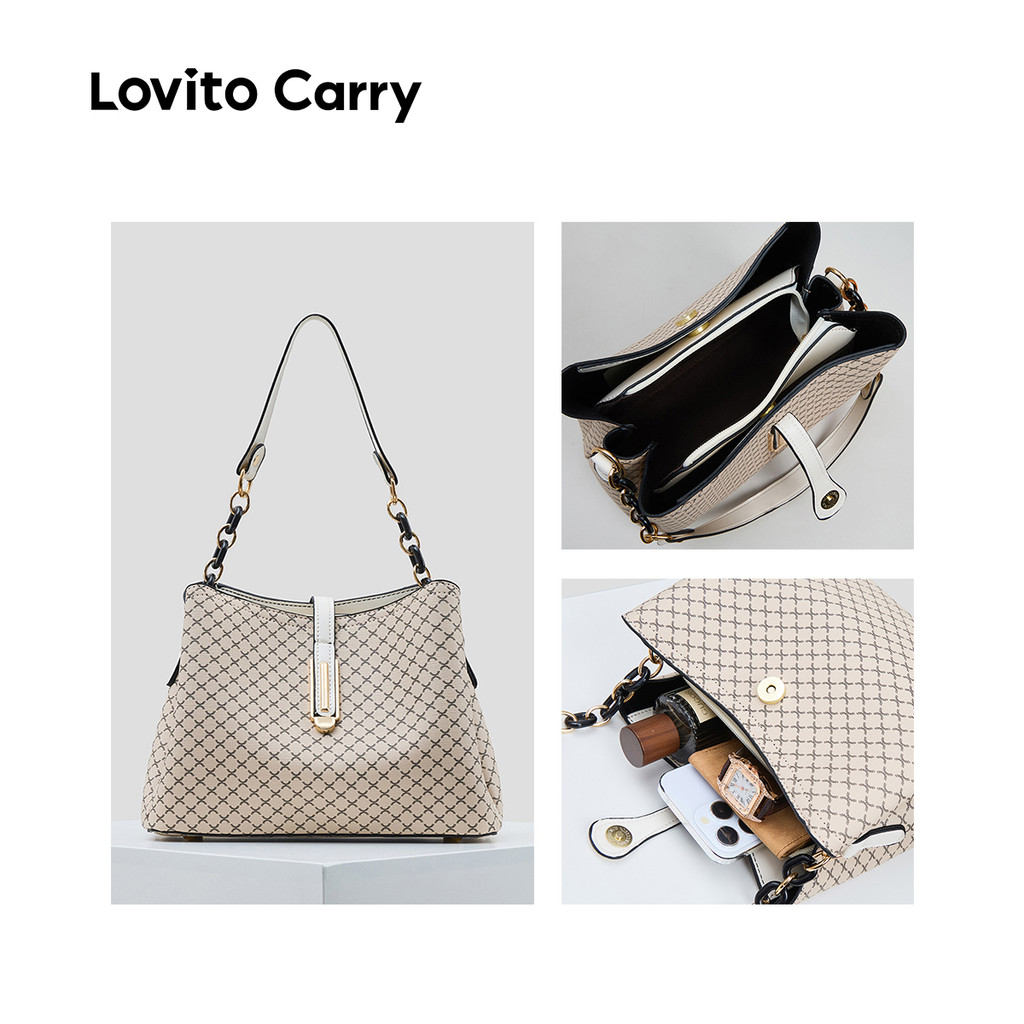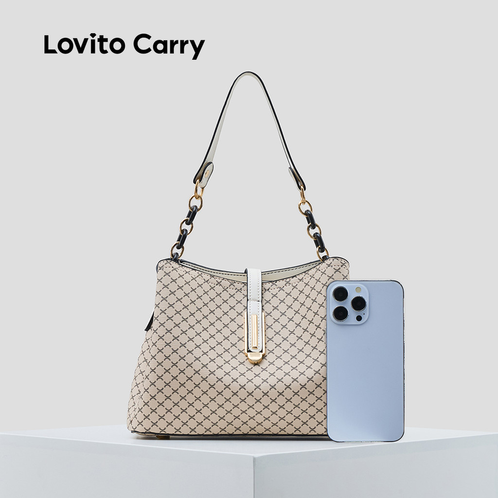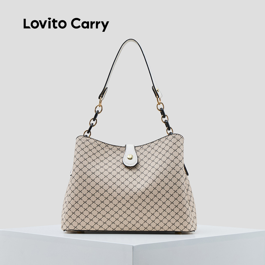 (Lovito Carry) สง่างามสีพื้นขนาดใหญ่ ความจุ One shoulder And Cross Body Bucket bag กระเป๋าสะพายใบเล็กสําหรับผู้หญิง LFAR11016