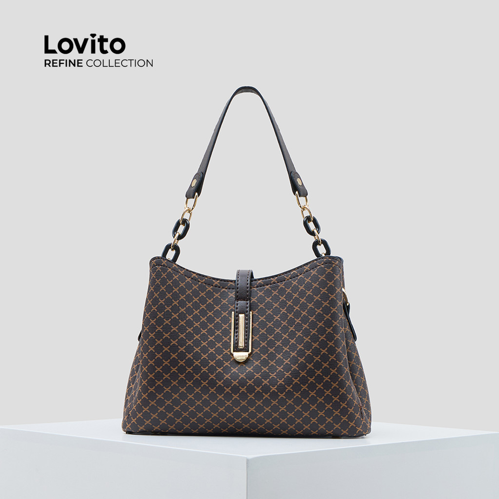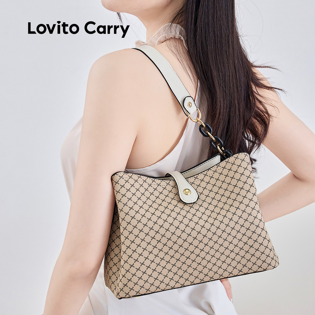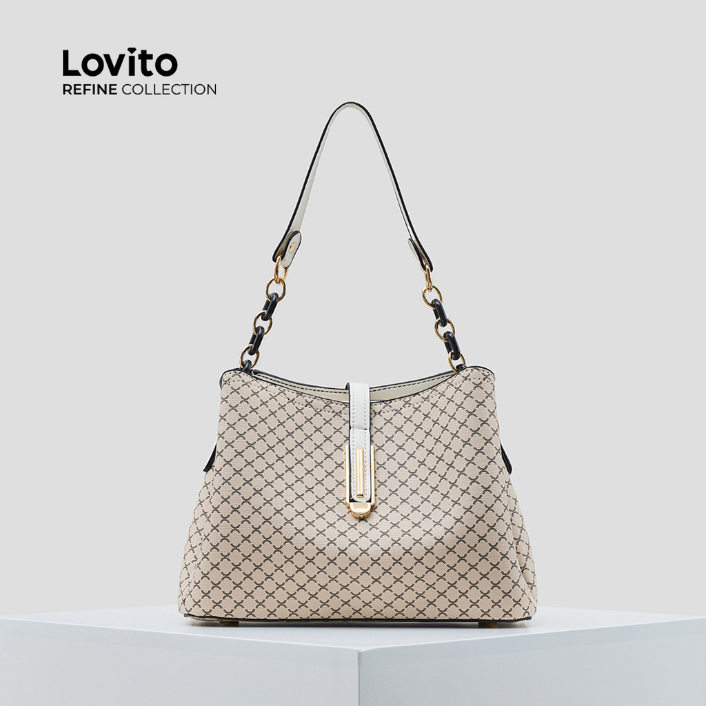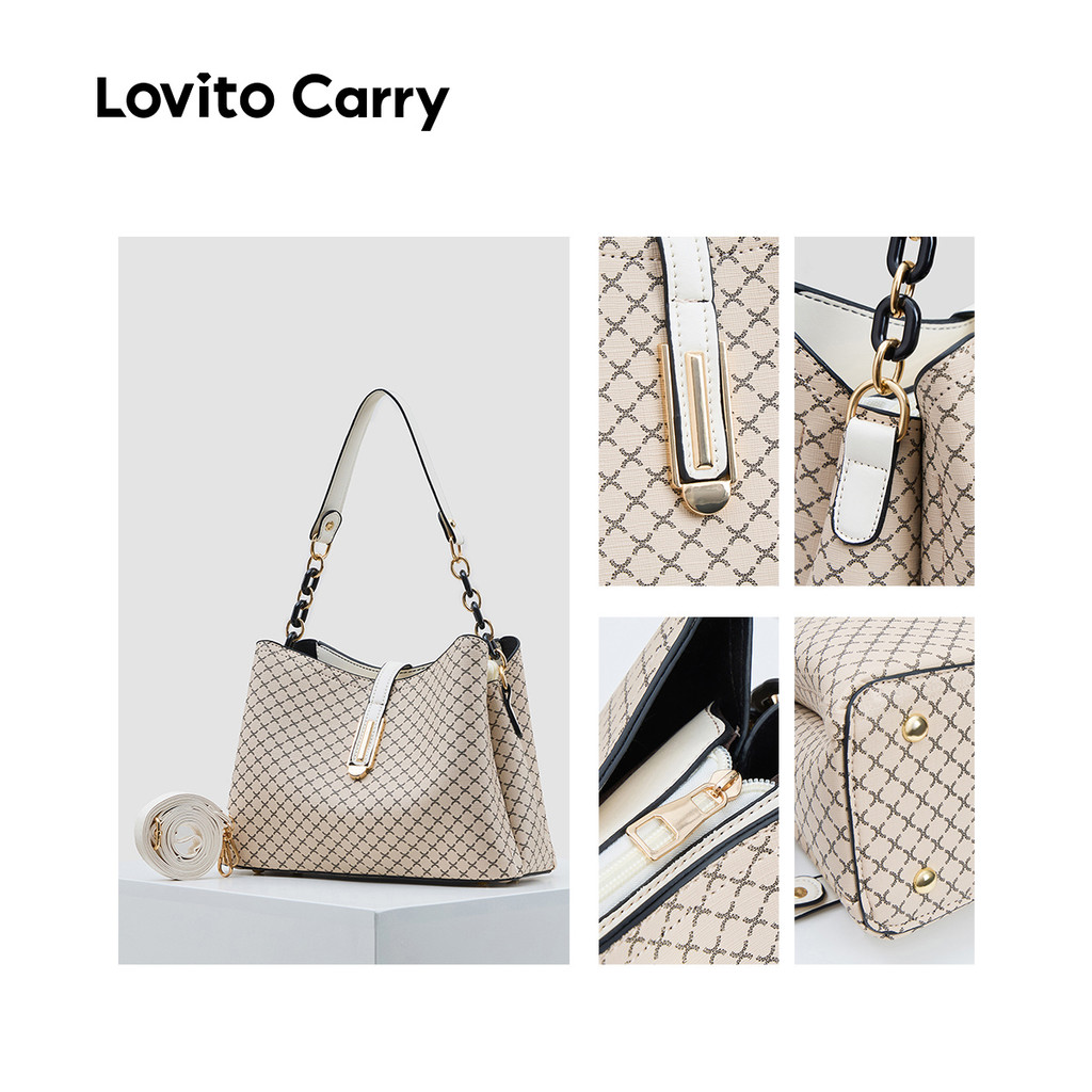 (Lovito Carry) สง่างามสีพื้นขนาดใหญ่ ความจุ One shoulder And Cross Body Bucket bag กระเป๋าสะพายใบเล็กสําหรับผู้หญิง LFAR11016