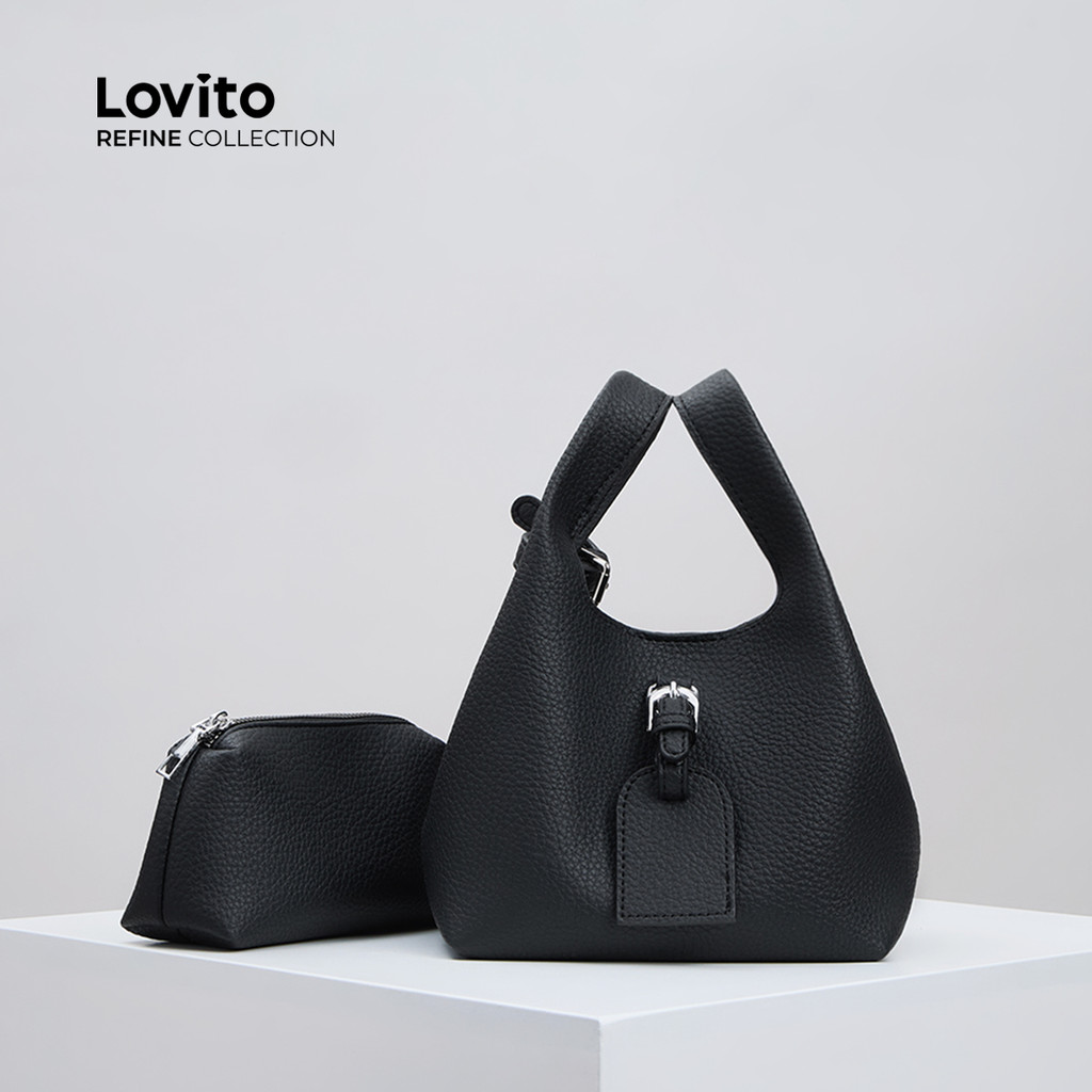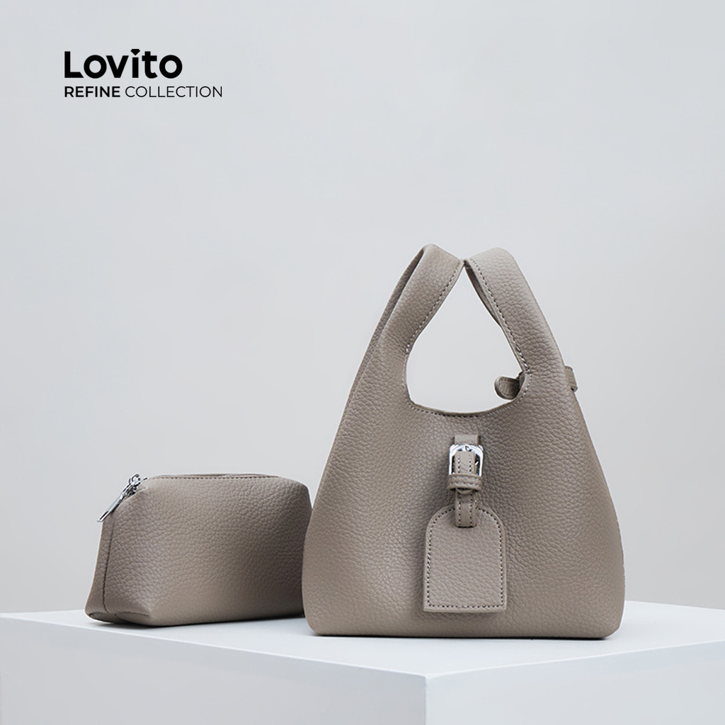 (Lovito Carry) กระเป๋าเซตสองชิ้นเนื้อธรรมดาแบบลําลองสําหรับผู้หญิง LFAR9029
