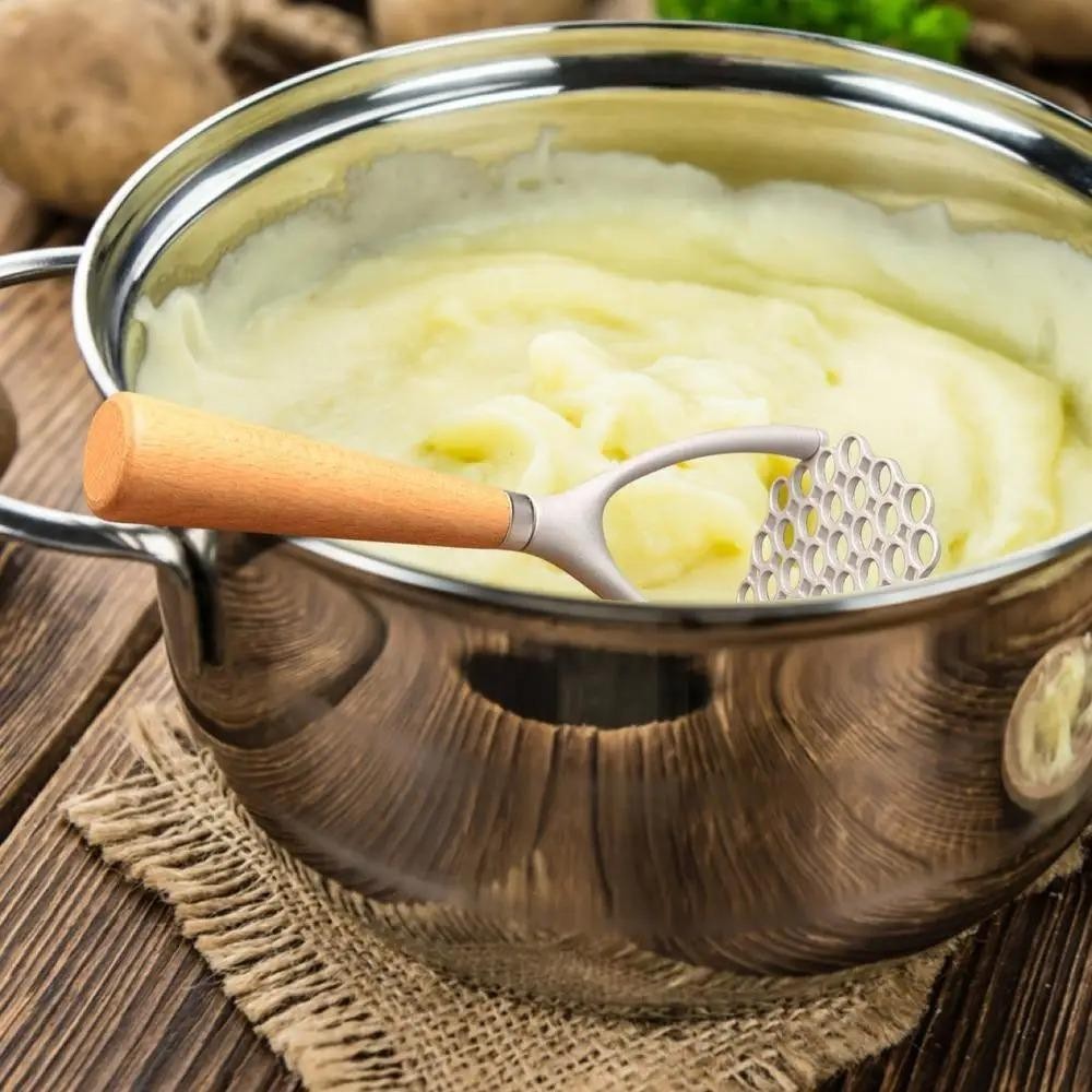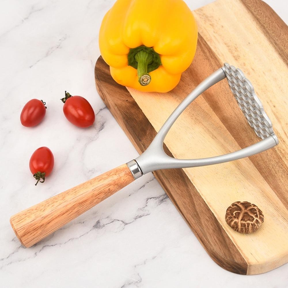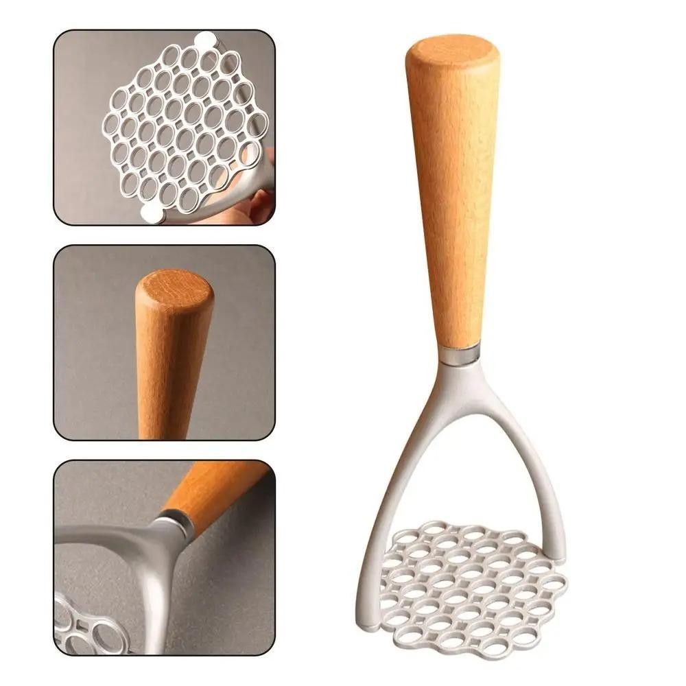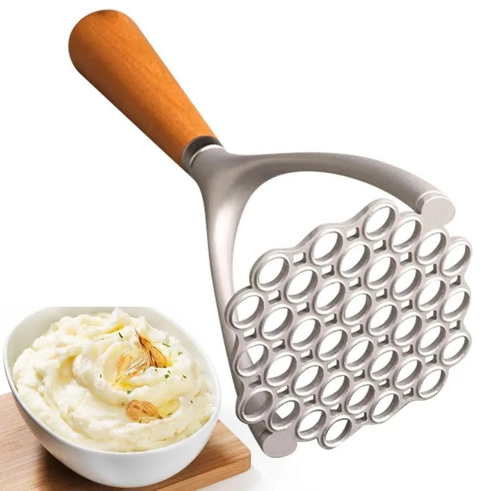 JOLTO Potato Masher, คู่มืออาหาร Crusher ผัก Smasher, Gadget ครัวไม้ Handle อลูมิเนียมกระเทียมกดอาหารเสริม