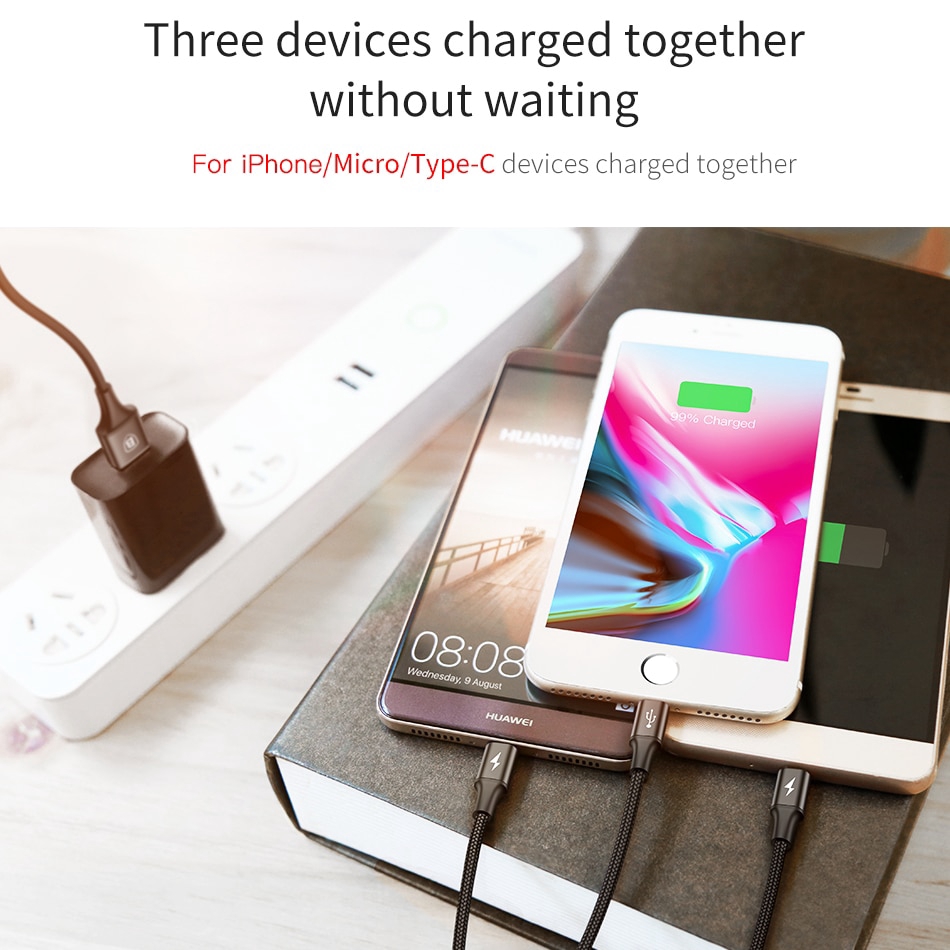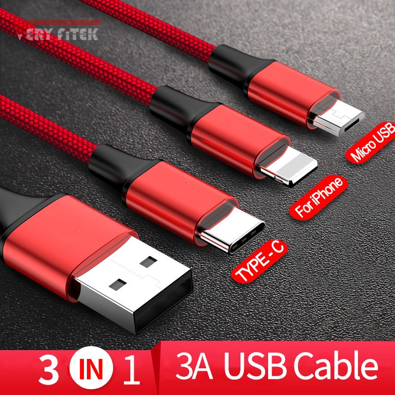 3in1 สาย USB สาย Micro ประเภท usb C สําหรับ samsung fast charge สายชาร์จ 3A สาย IOS