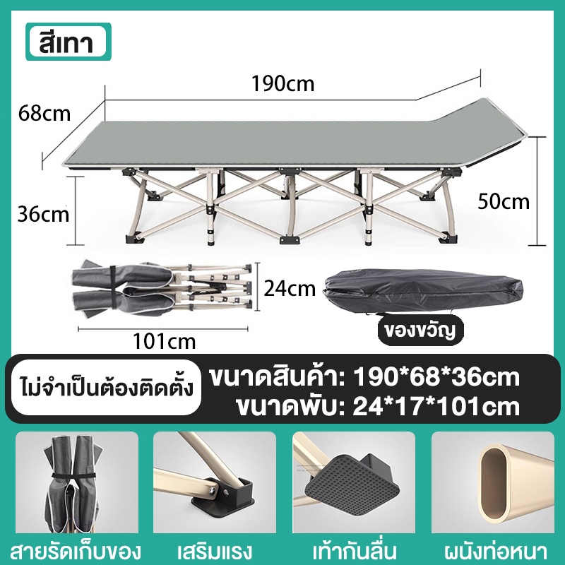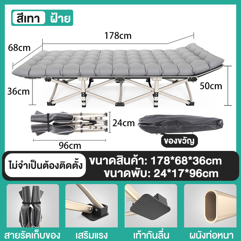CT เตียงพับนอนได้ 190cm ที่นอนพับได้ 2 in 1 ไม่ต้องประกอบ ขาเหล็ก แบบพกพา ความจุแบริ่ง 300KG