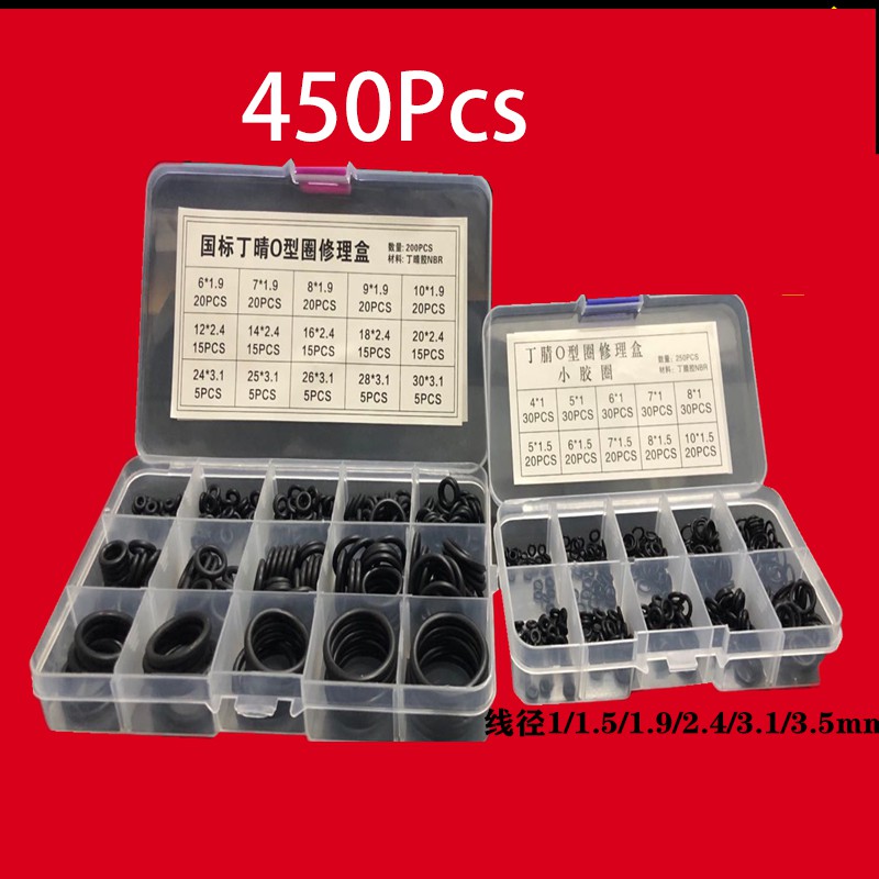 450pcs O แหวนยางซีล O-แหวนไนไตรล์เครื่องซักผ้าซีล Damper กันน้ําซ่อมยาง Assortment ชุดกล่องปิดผนึก