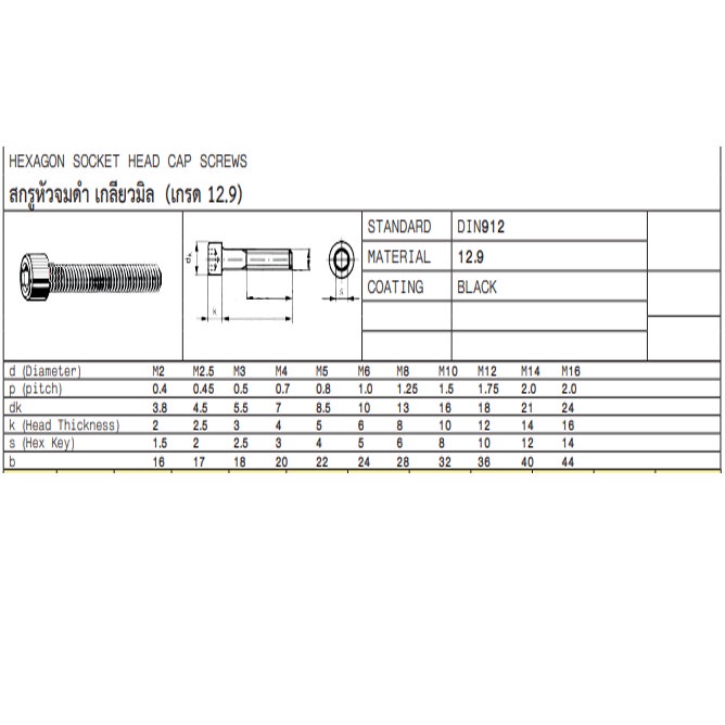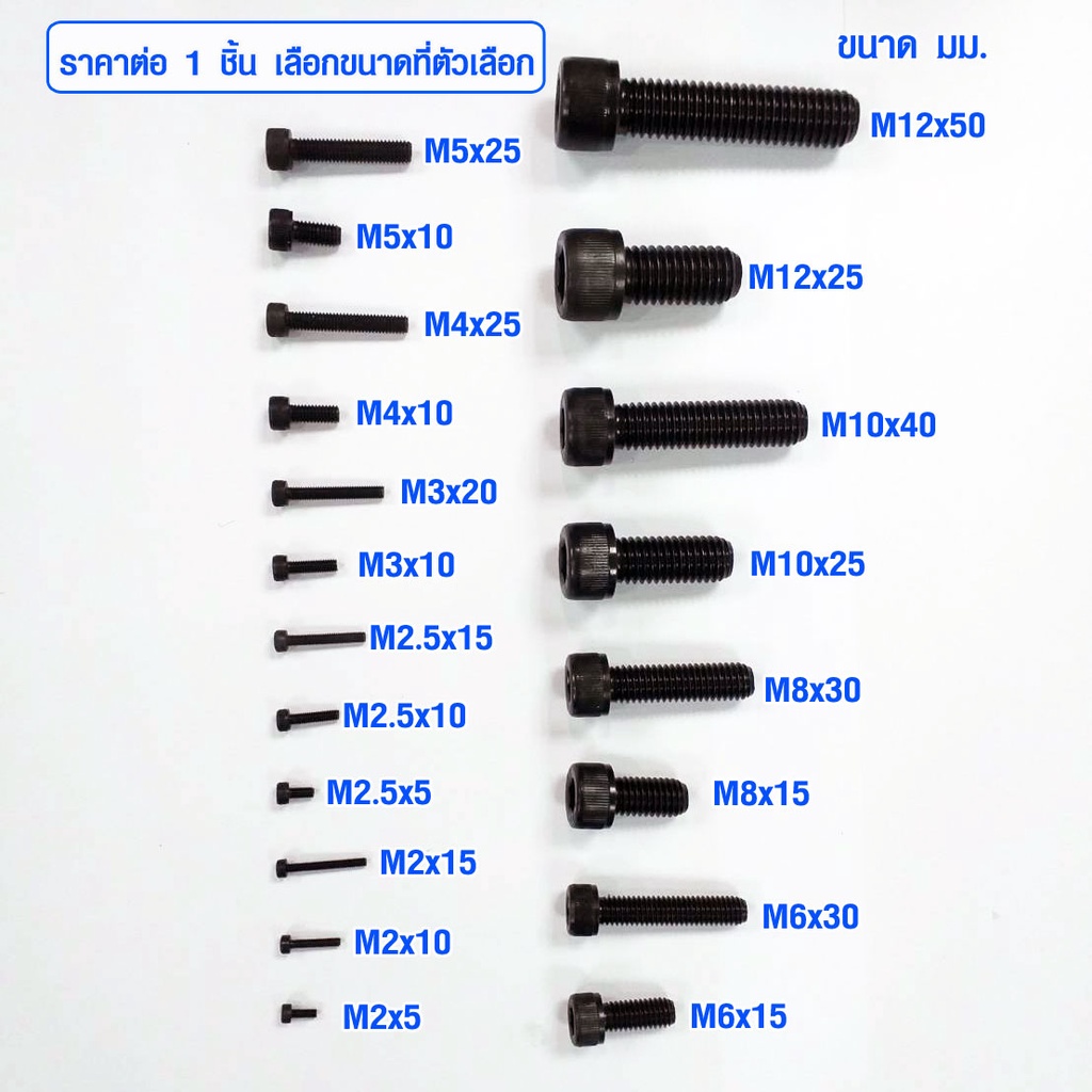 สกรูหัวจม สีดำ เกลียวมิล น็อตหัวจม น็อต 6 เหลี่ยม หัวจม น็อตหกเหลี่ยมหัวจม m2 - m12 น็อตสีดำ สกรูสีดำ น๊อต สกรู ABP