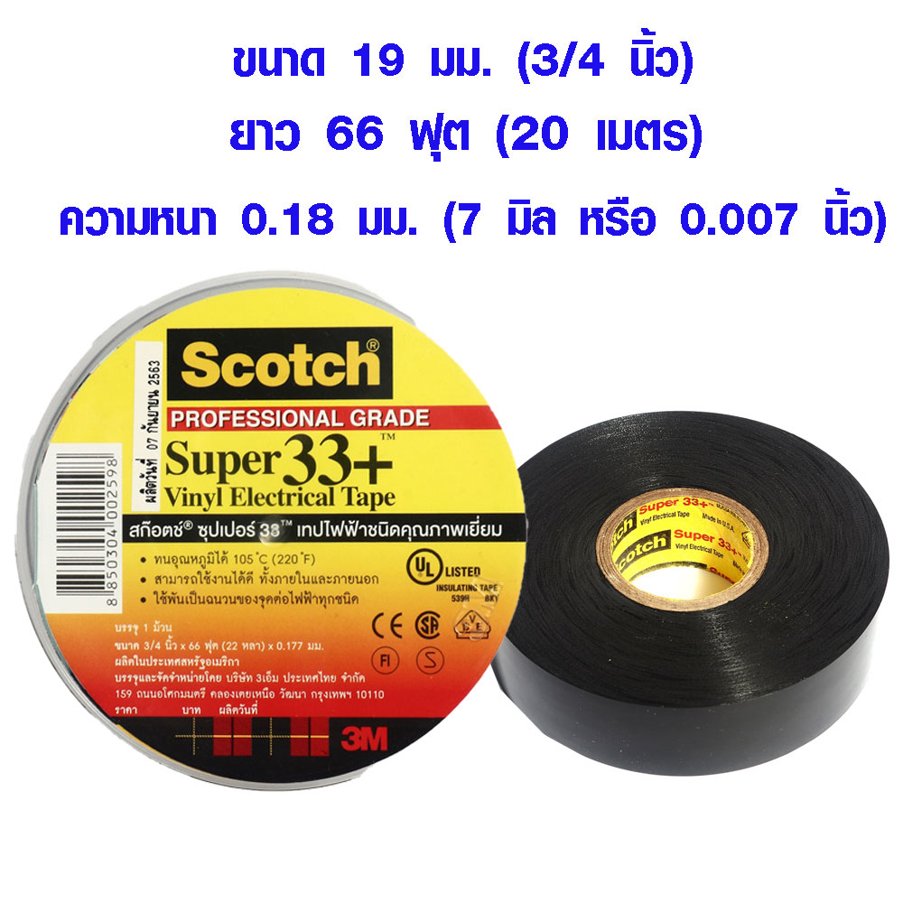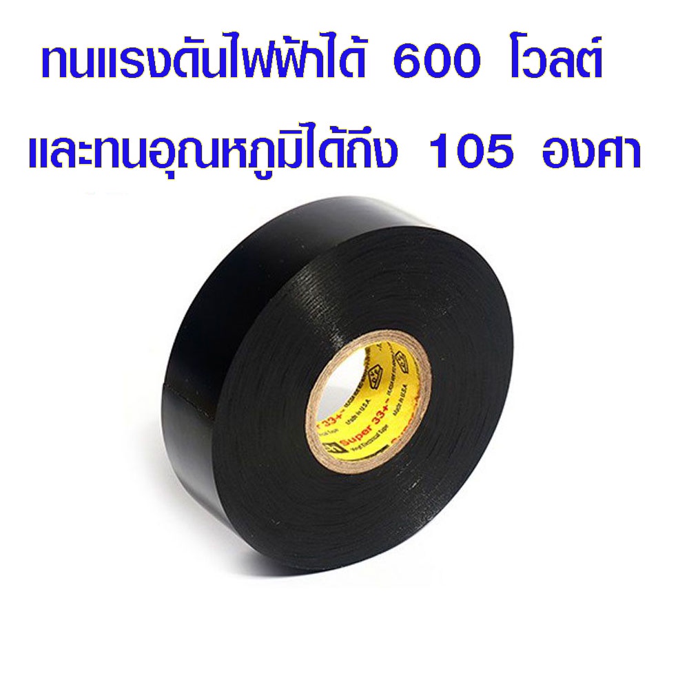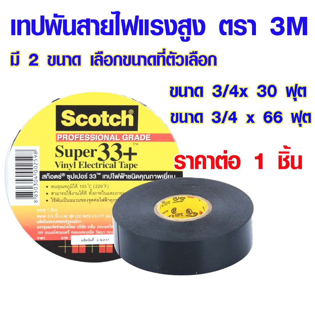 เทปพันสายไฟ มี 2 ขนาด 3/4 x 30,66 ฟุต เทปพันสายไฟแรงสูง #33 ตรา 3M เทปกาว สีดำ เนื้อกาวไม่เหนียวเยิ้ม PVC ST
