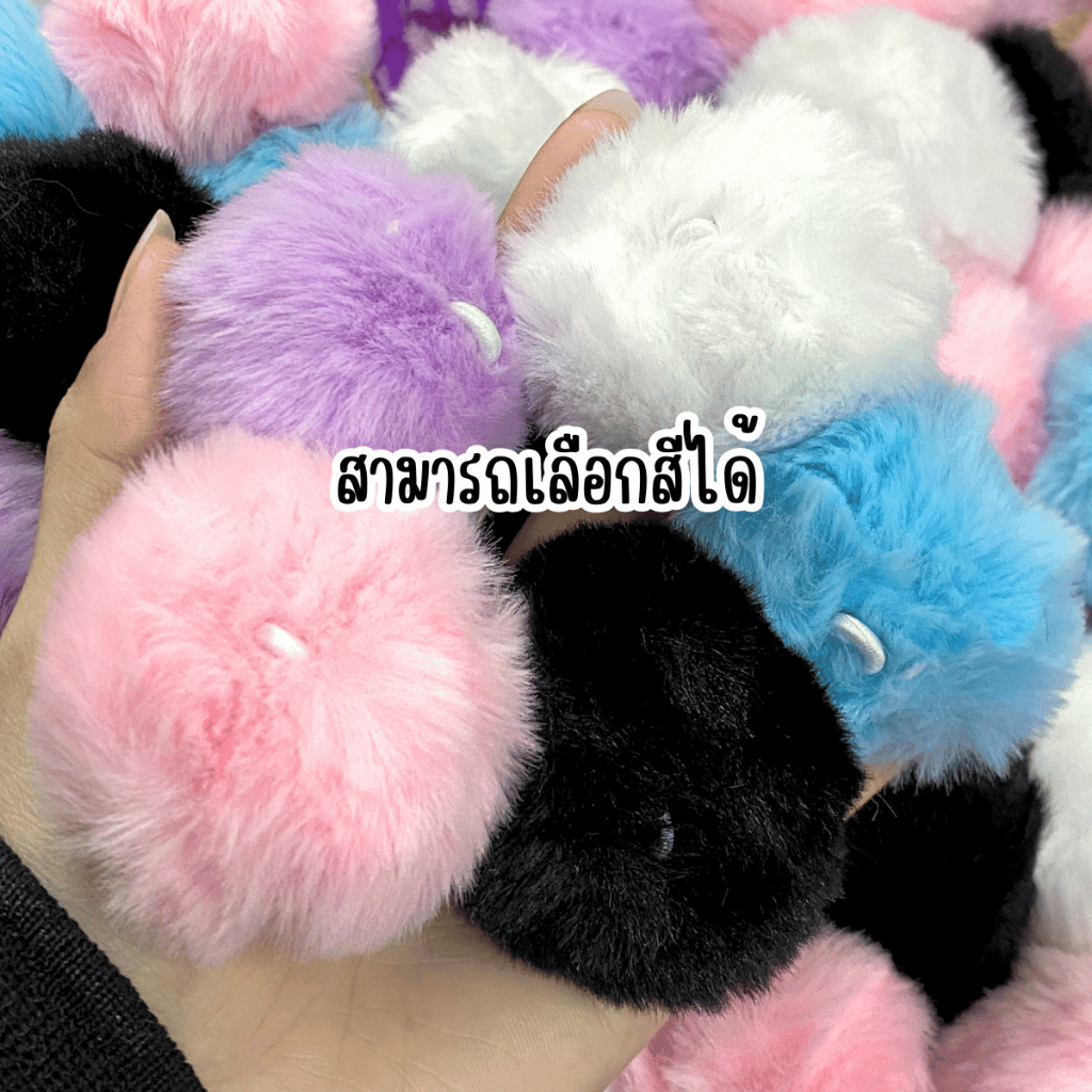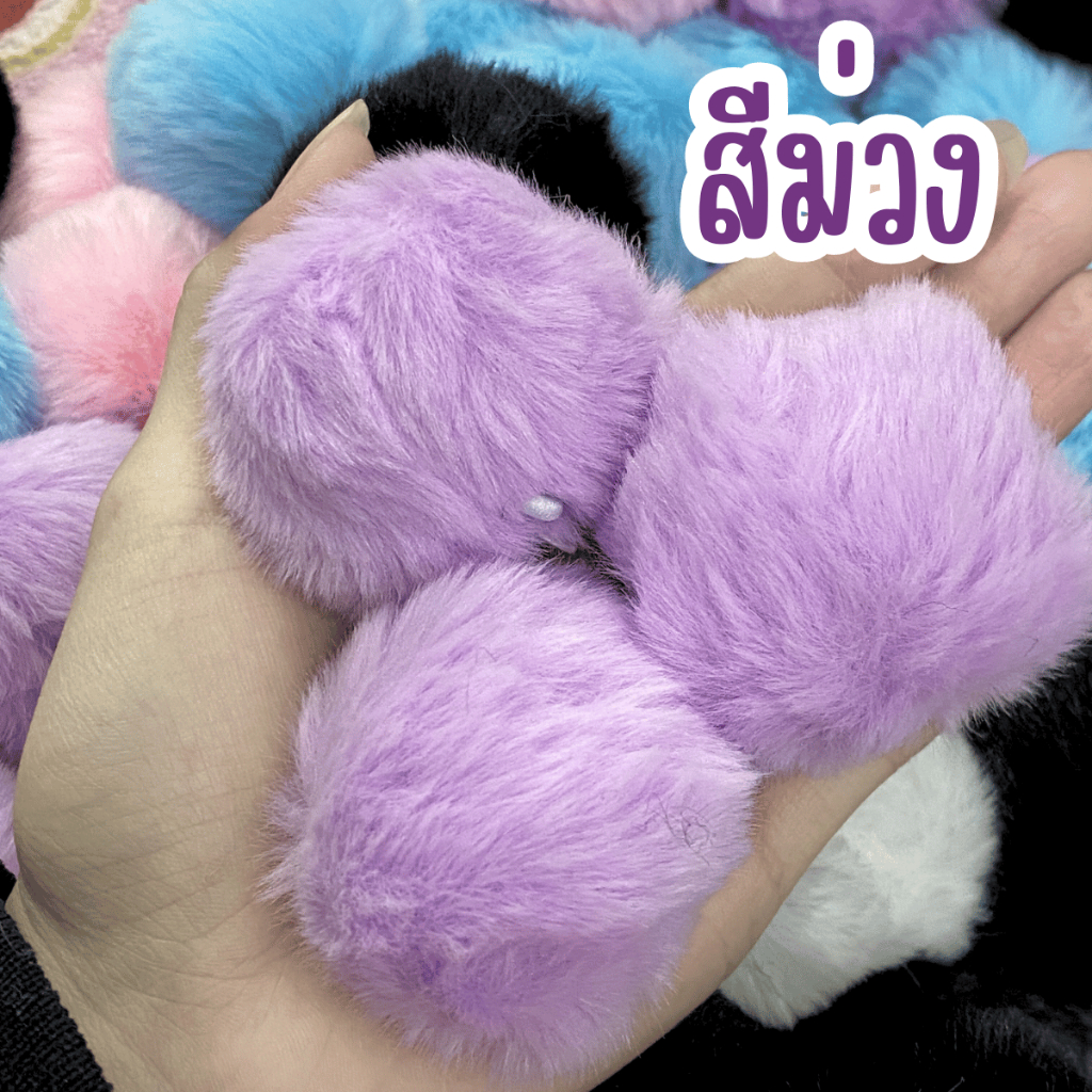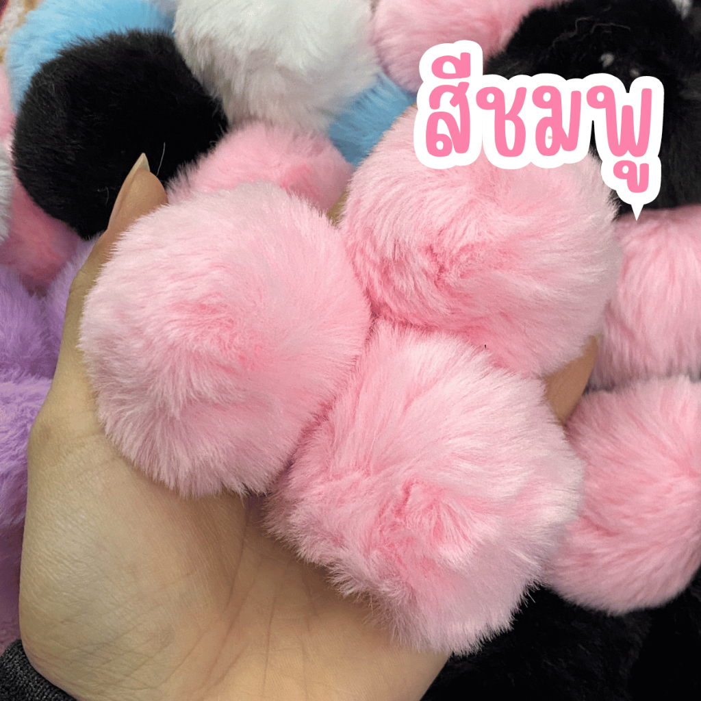 ปอมปอม ขนฟู พร้อมห่วงยางยืดสำหรับห้อย 1ชิ้น อะไหล่ พวงกุญแจ ที่ห้อย พวงกุญแจปอมปอม ห้อยกระเป๋า ขนมิ้ง ของตกแต่ง จี้ KJ