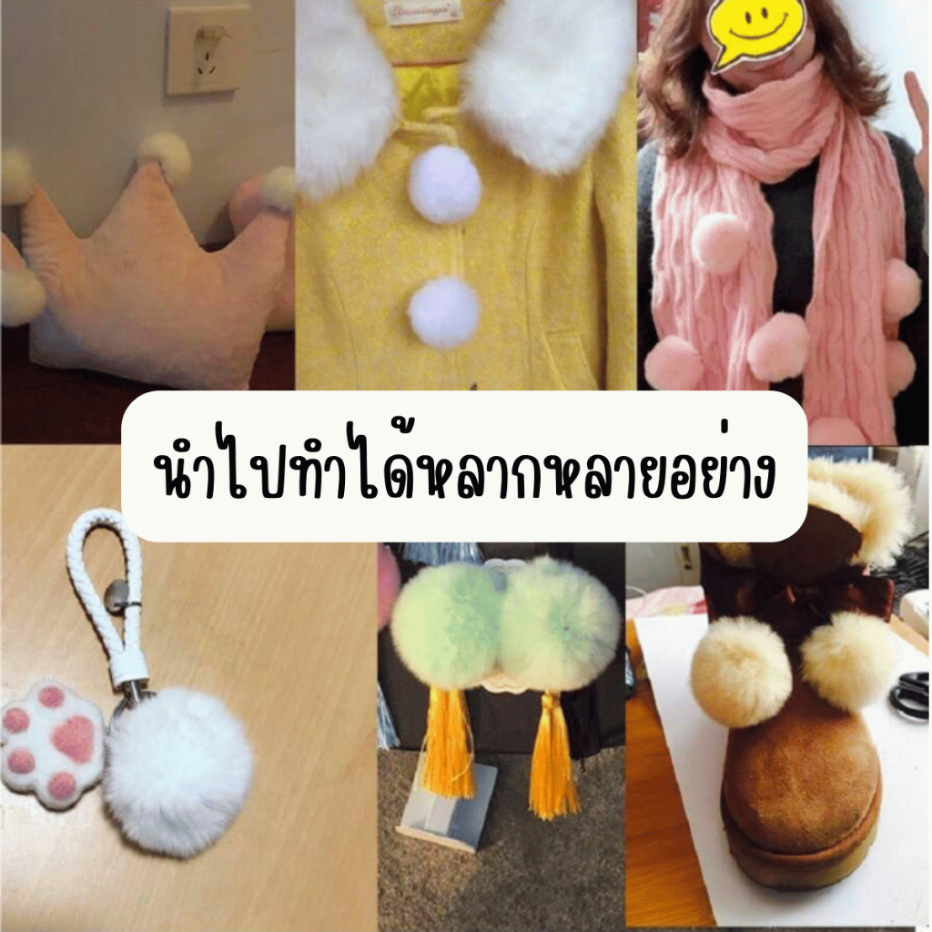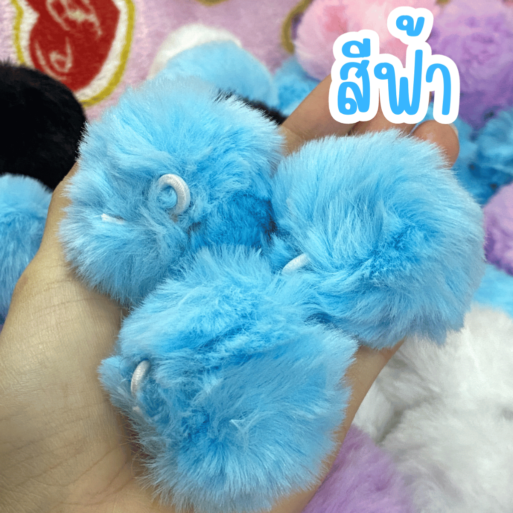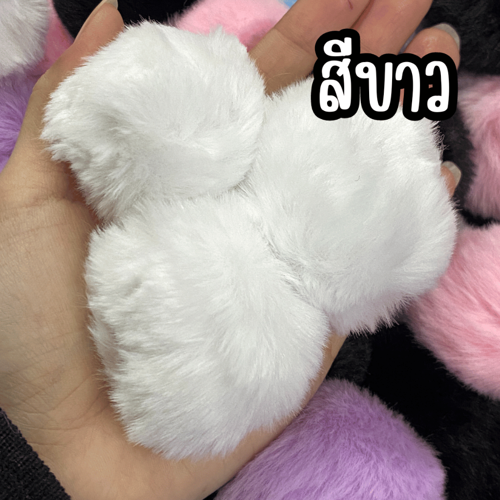 ปอมปอม ขนฟู พร้อมห่วงยางยืดสำหรับห้อย 1ชิ้น อะไหล่ พวงกุญแจ ที่ห้อย พวงกุญแจปอมปอม ห้อยกระเป๋า ขนมิ้ง ของตกแต่ง จี้ KJ