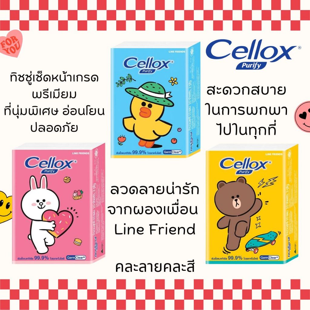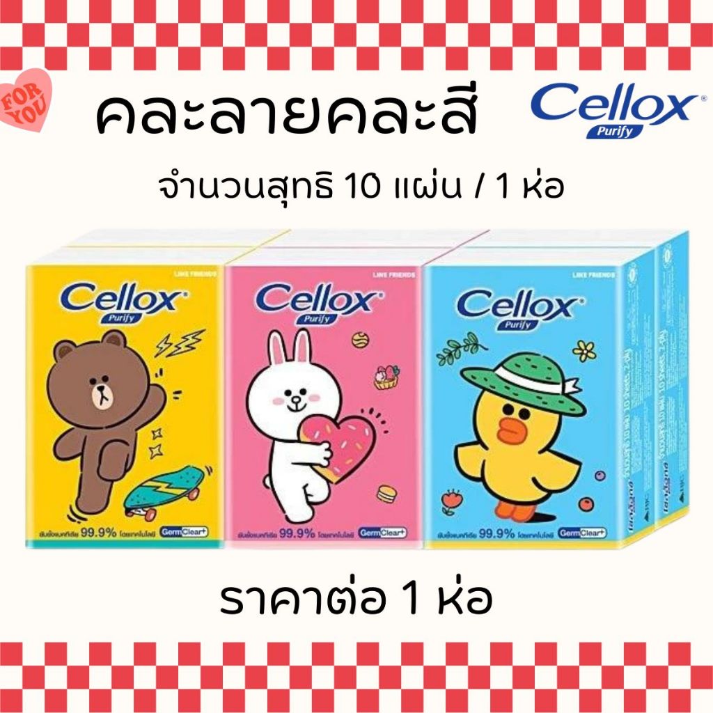 กระดาษทิชชู่ เซลล็อกซ์พิวริฟายไลน์เฟรนด์มินิ จำนวนสุทธิ 10 แผ่น ทิชชู่พกพา กระดาษทิชชู่เช็ดหน้า เช็ดมือ ทิชชู่ MK