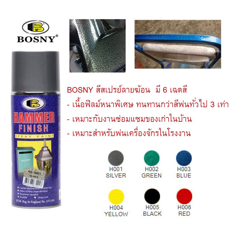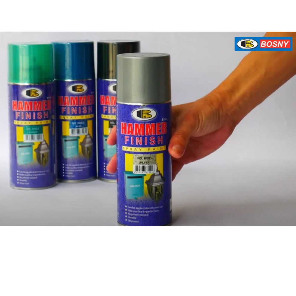 ิBOSNY สีพ่นเหล็ก สีสเปรย์ พ่นเครื่องจักร HAMMER FINISH SPRAY PAINT B114 สีลายฆ้อน สเปรย์ลายฆ้อน 400 มล สีสเปรย์ลายค้อน