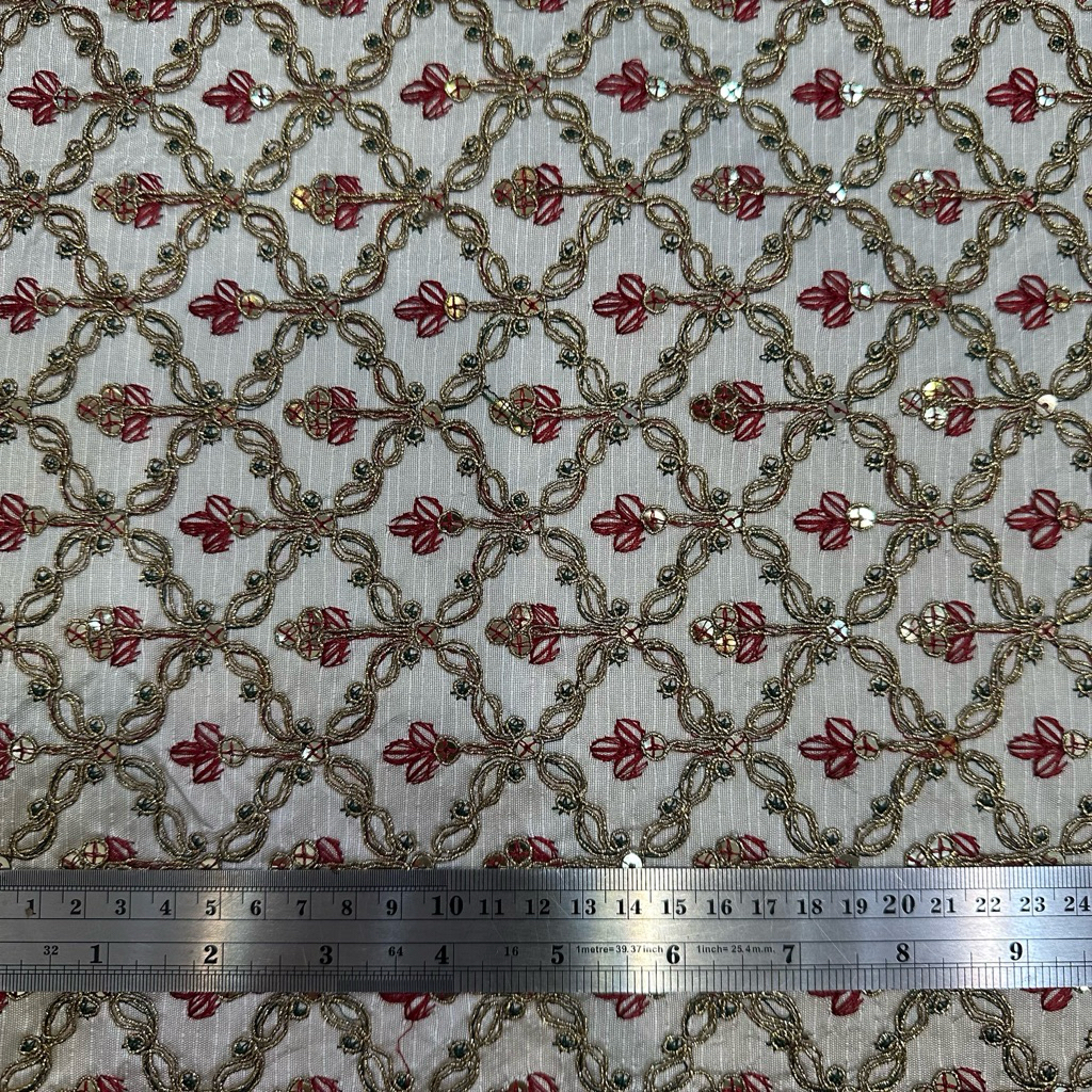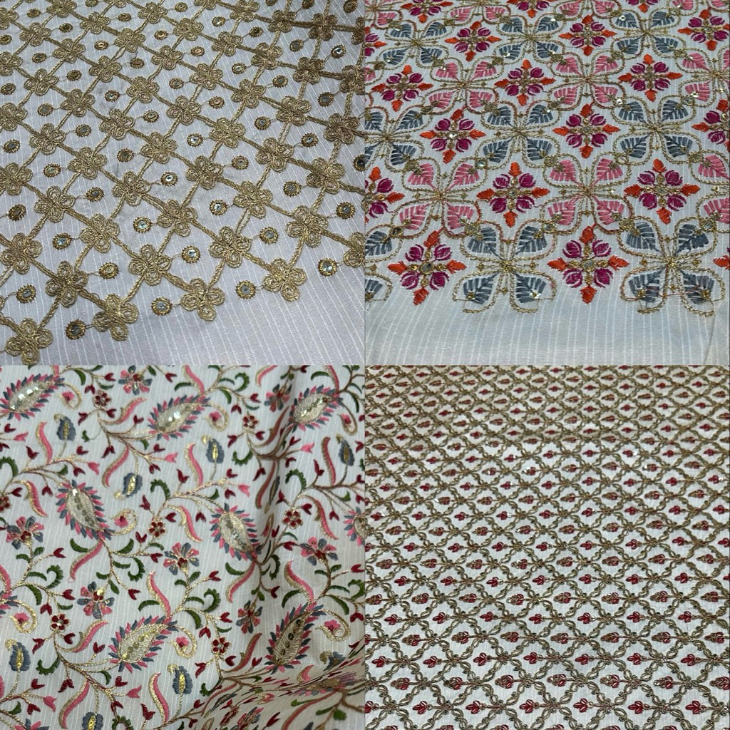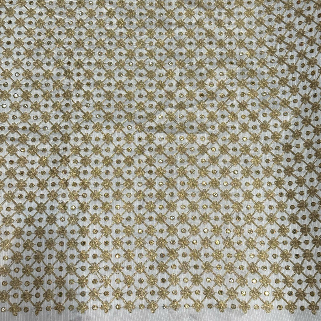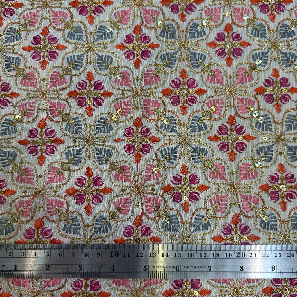 Fabrica_shop ผ้าไหมเทียมปักลาย ด้วยดิ้นทอง หน้ากว้าง 45 นิ้ว (1.14m)