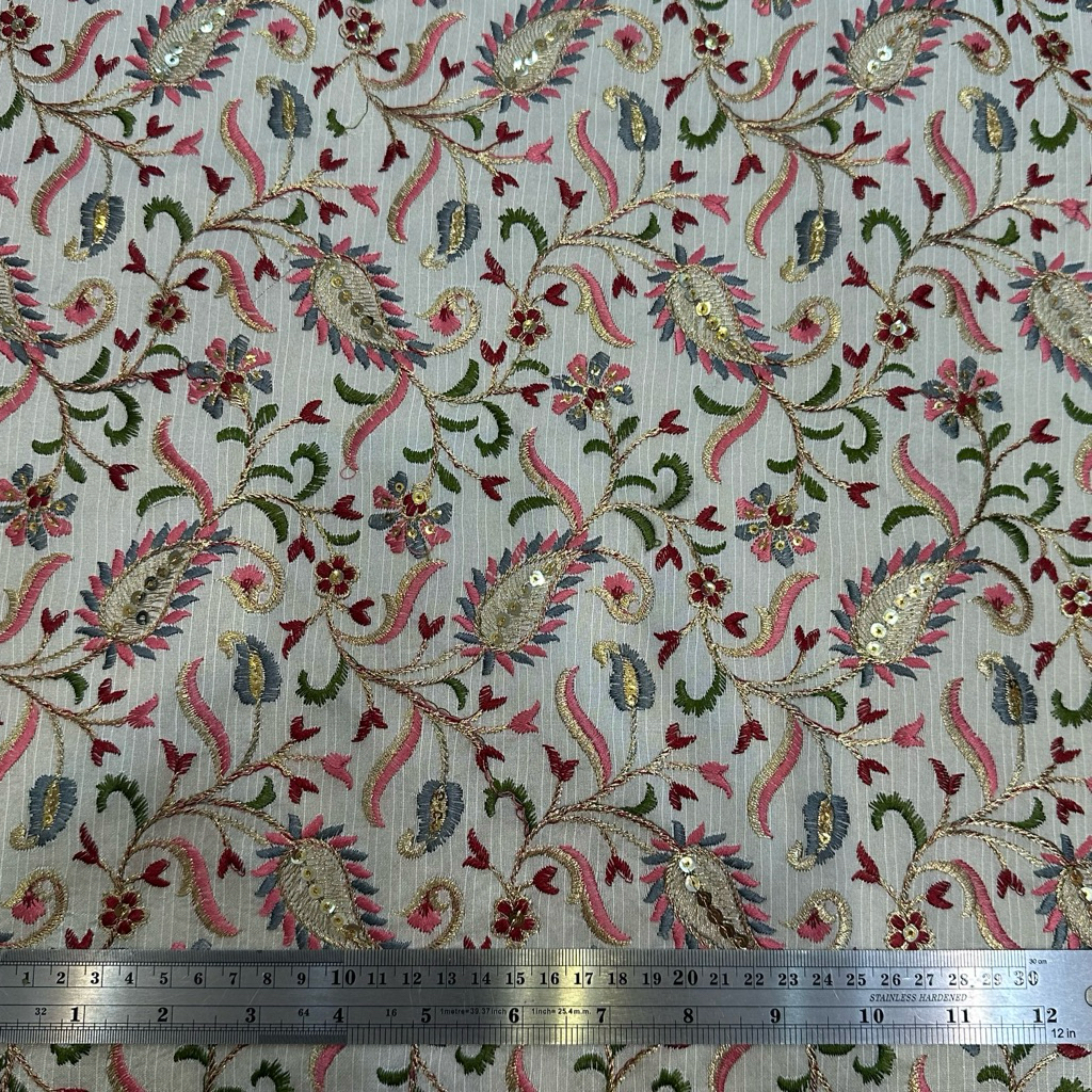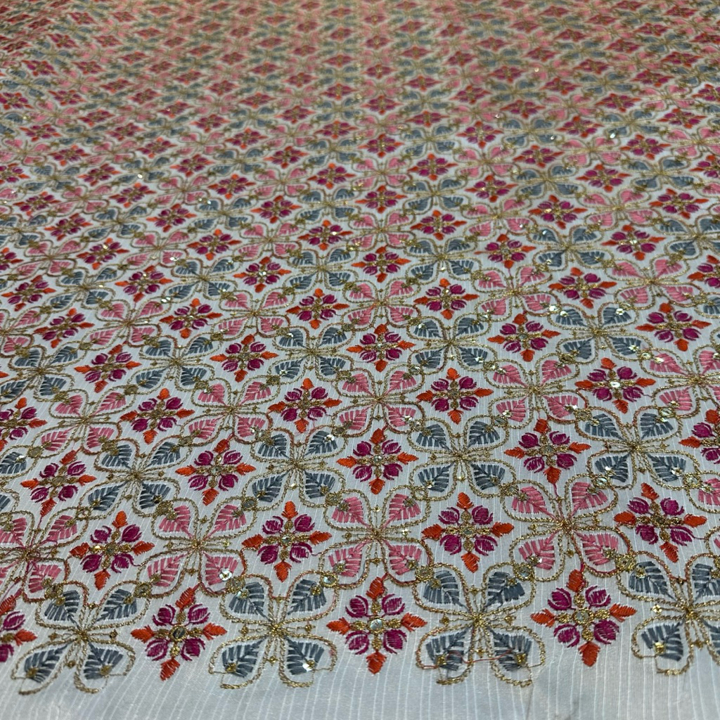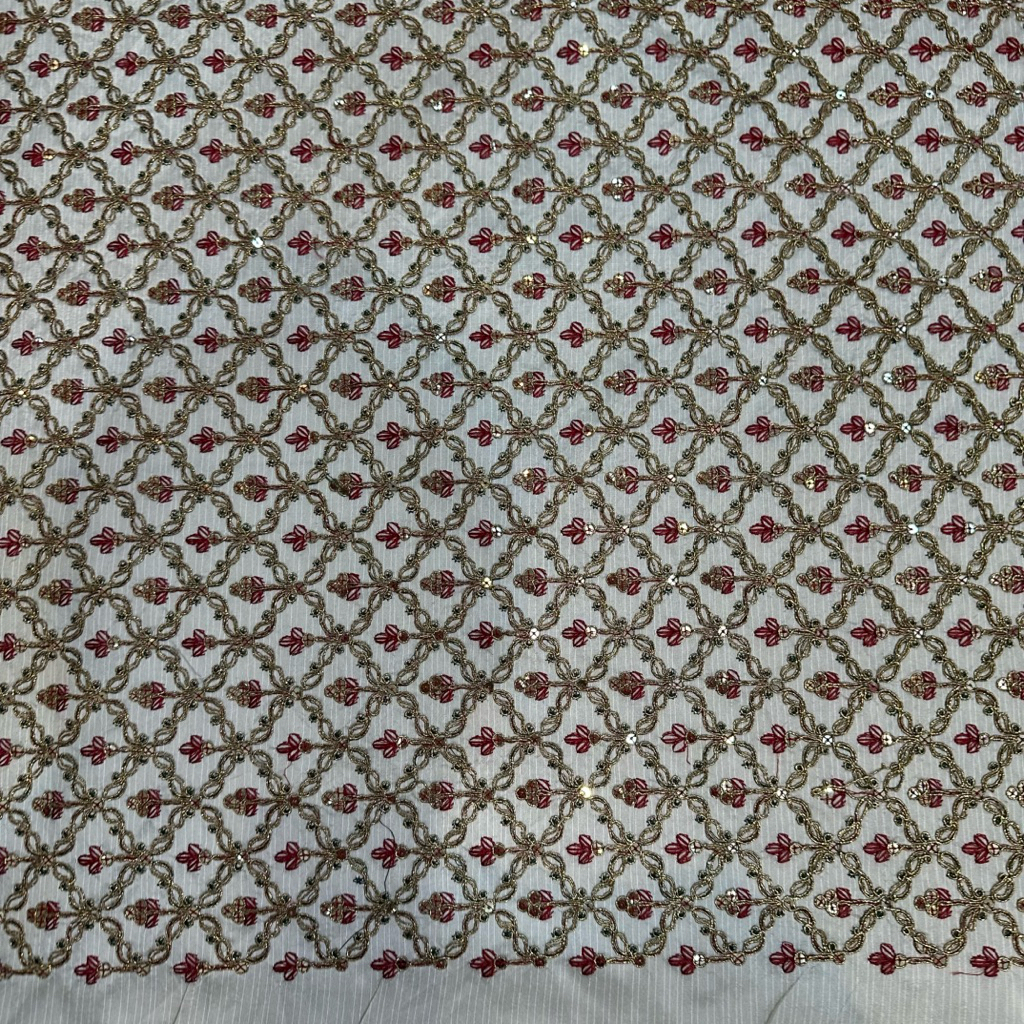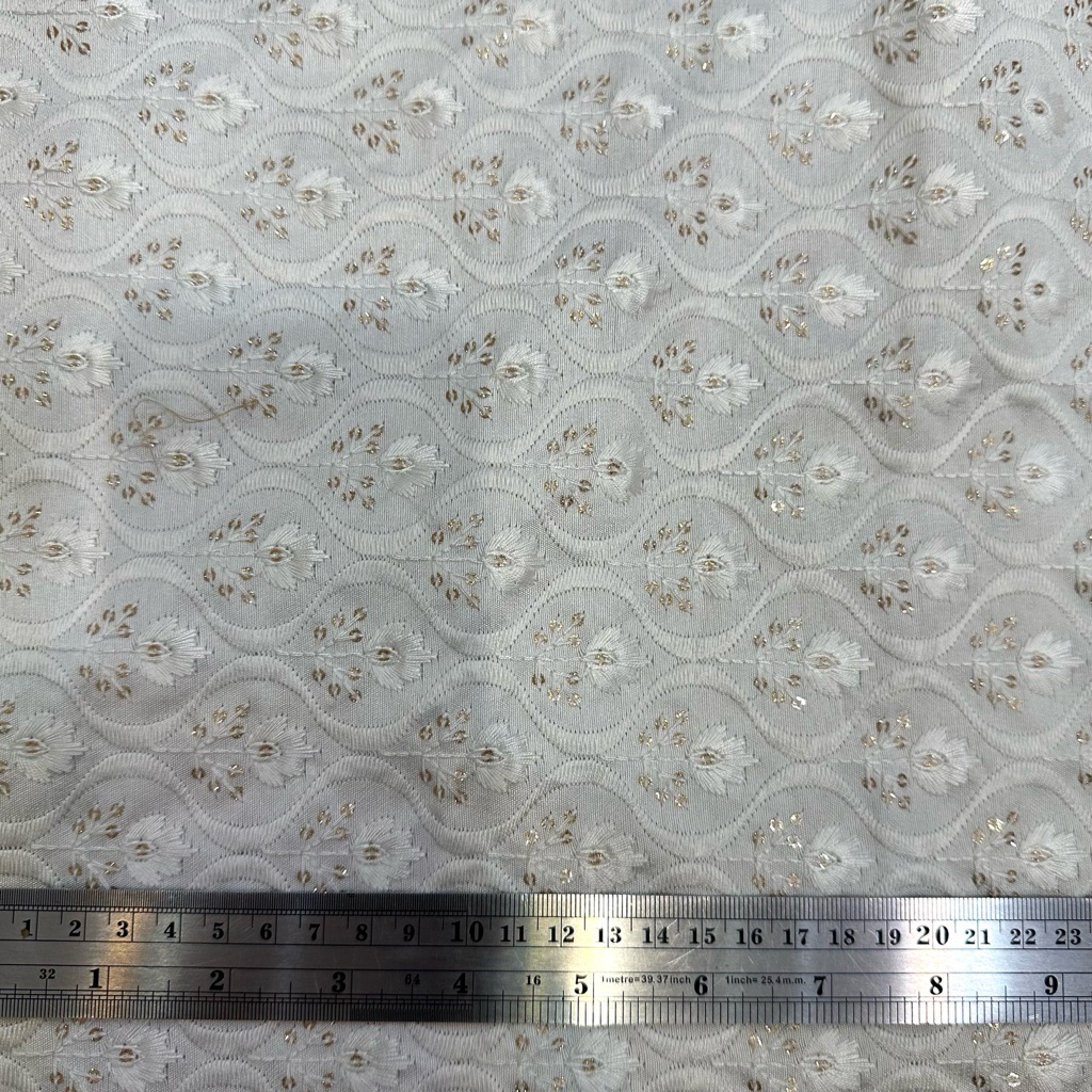 Fabrica_shop ผ้าไหมเทียมปักลาย ด้วยดิ้นทอง หน้ากว้าง 45 นิ้ว (1.14m)