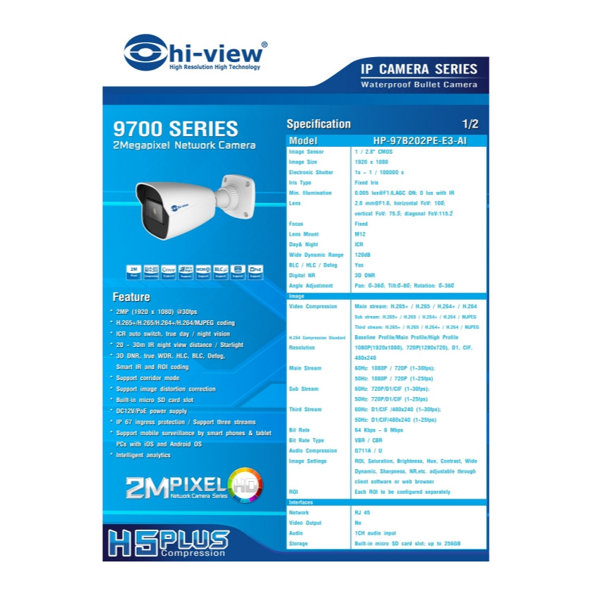 Hi-View HP-97B202PE-E3-AI กล้องนับจำนวน คน รถยนต์ รถจักรยานยนต์ ความชัด 2 ล้านพิกเซล