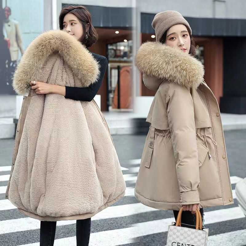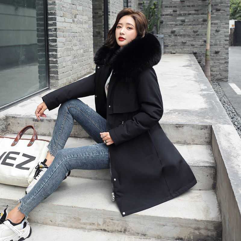 แจ็คเก็ตปายทับเบาะหนาสไตล์เกาหลีสำหรับผู้หญิง ขนาดความยาวปานกลาง เหมาะสมกับฤดูหนาว