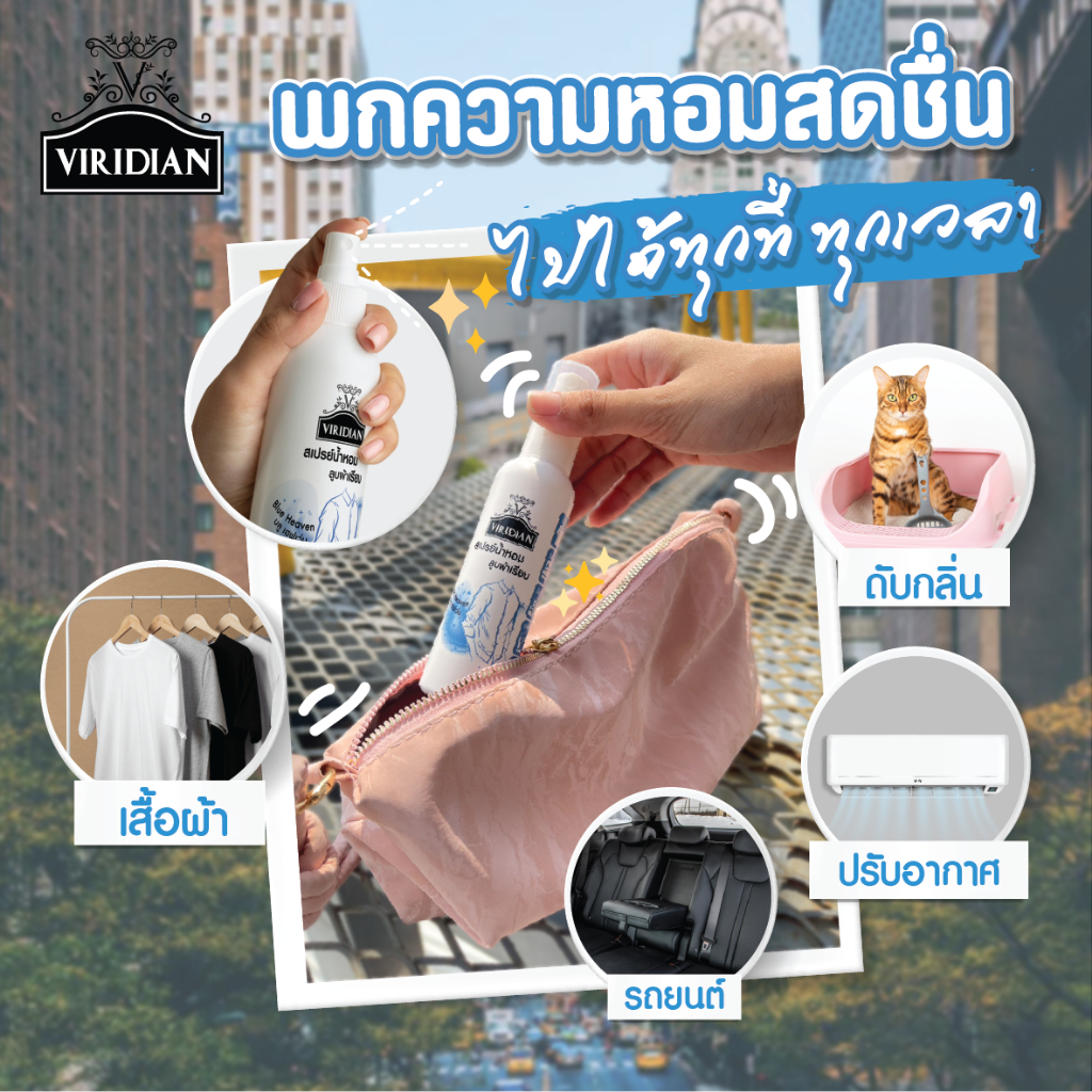 สเปรย์ผ้าหอม สเปรย์ดับกลิ่นอับ เวอร์ริเดียนฉีดแล้วลูบผ้าก็เรียบ Viridian เวอร์ริเดียน ขนาด 90ml