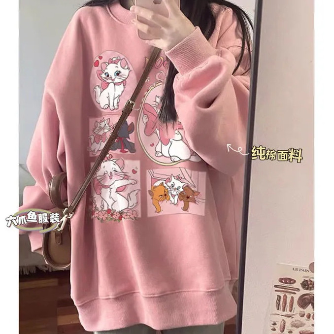 ผู้หญิงการ์ตูนแมวเสื้อแขนยาวแฟชั่นรอบคอเสื้อกันหนาวฤดูใบไม้ร่วง/ฤดูหนาวเสื้อหลวม