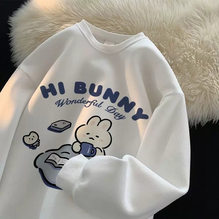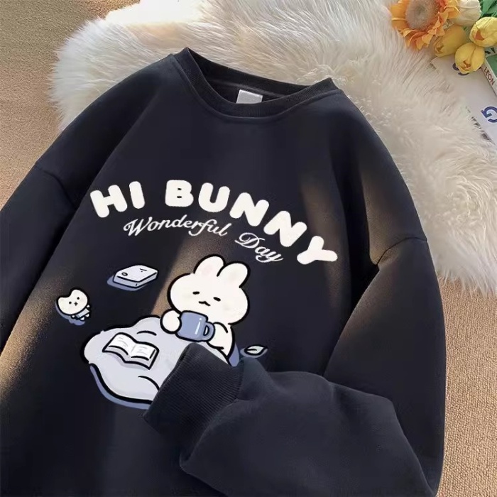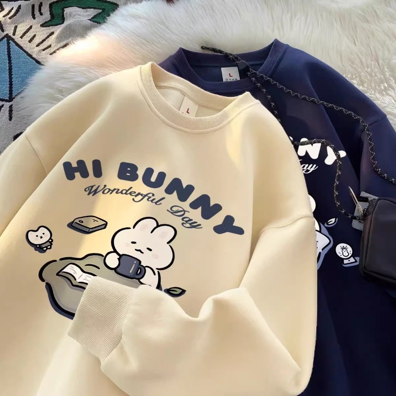 Polyesterเกาหลีรุ่นRetroฤดูใบไม้ผลิและฤดูใบไม้ร่วงแขนยาวคู่รอบคอเสื้อกันหนาวลําลองหลวมน่ารักการ์ตูนผู้หญิงTop