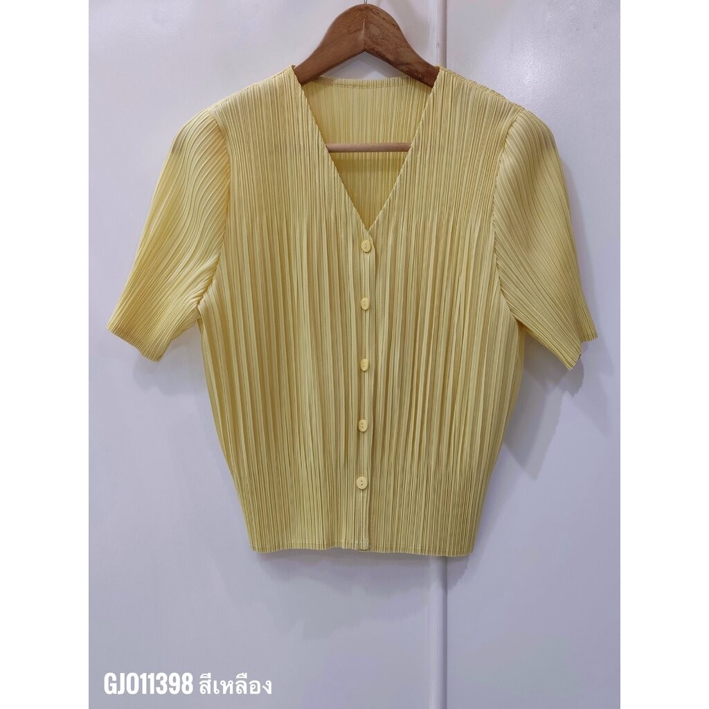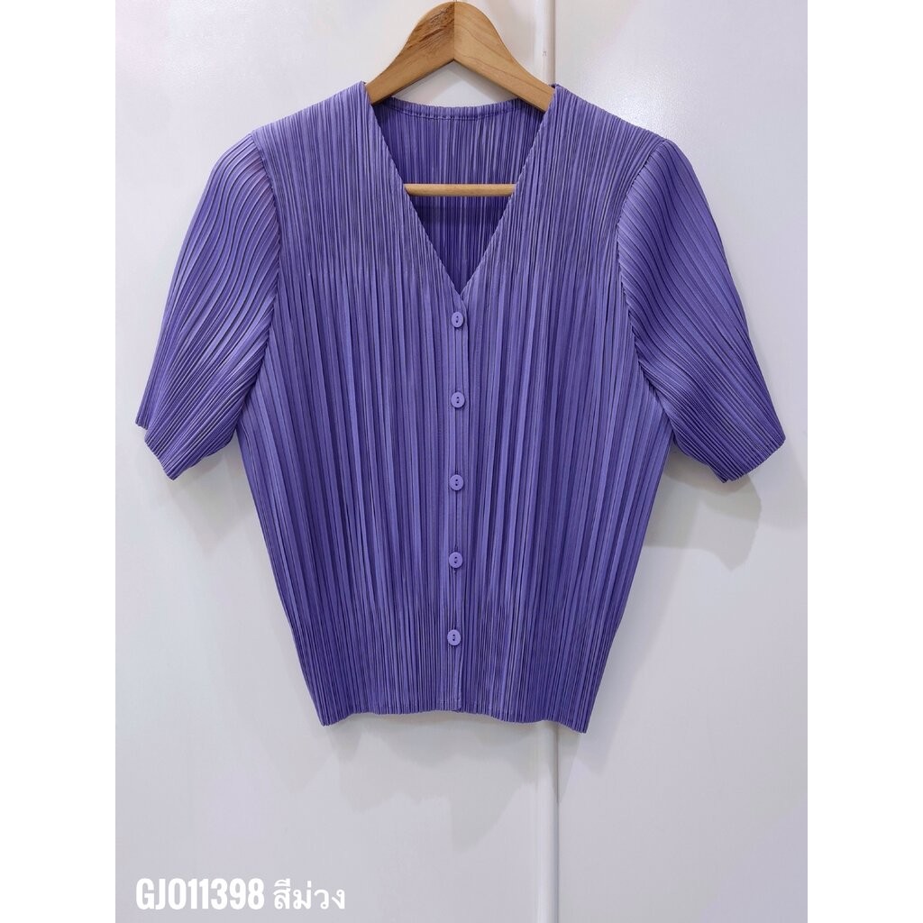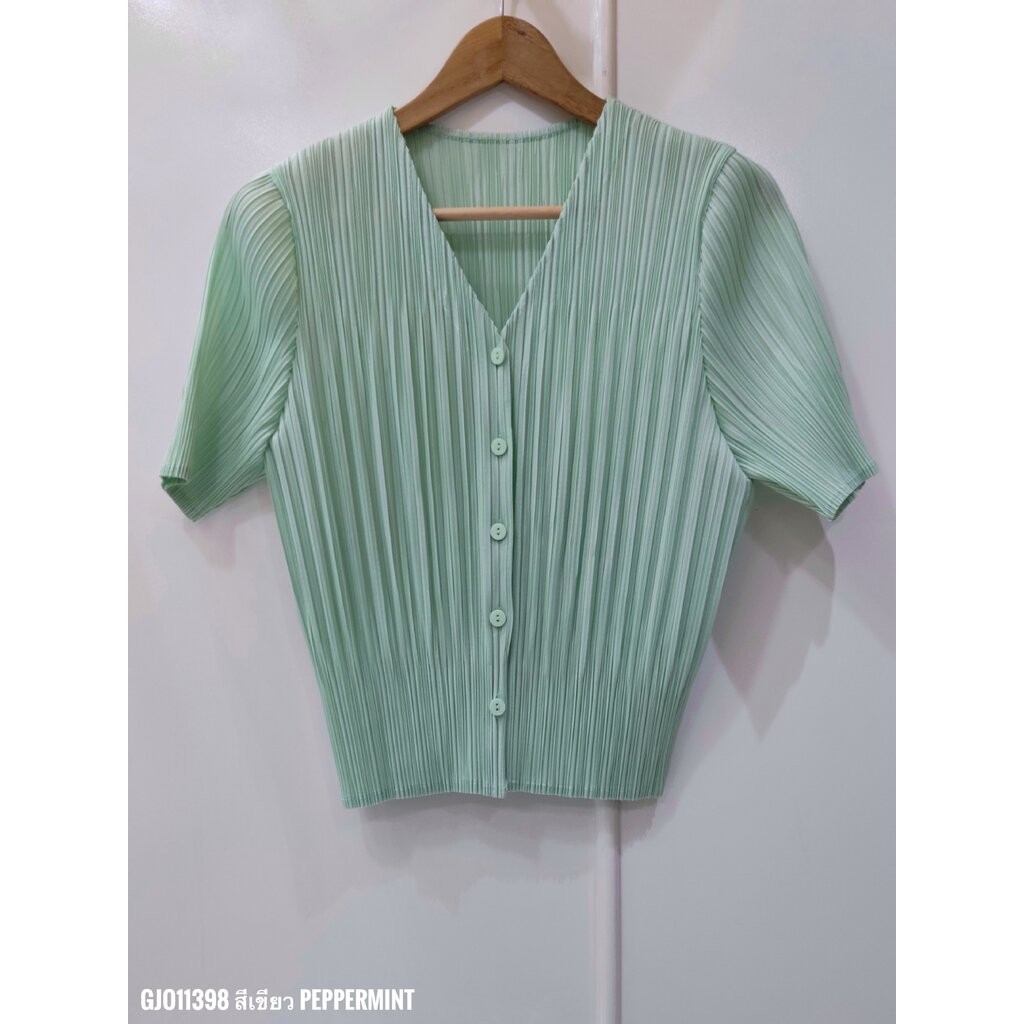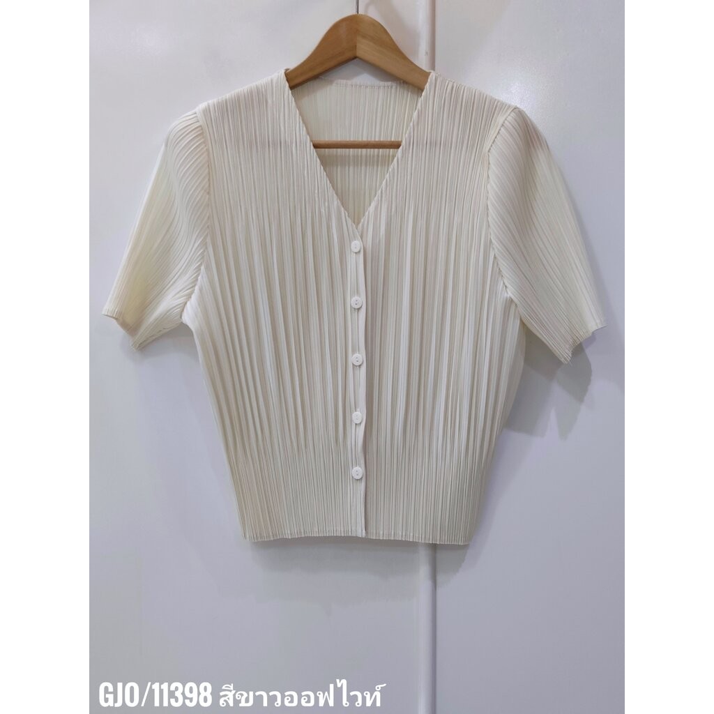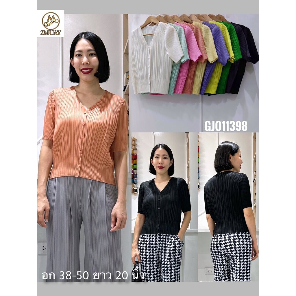 2MUAY รุ่น GJO11398 เสื้ออัดพลีท V NECK BUTTON FRONT PLEATED TOP 10 สี FREE SIZE