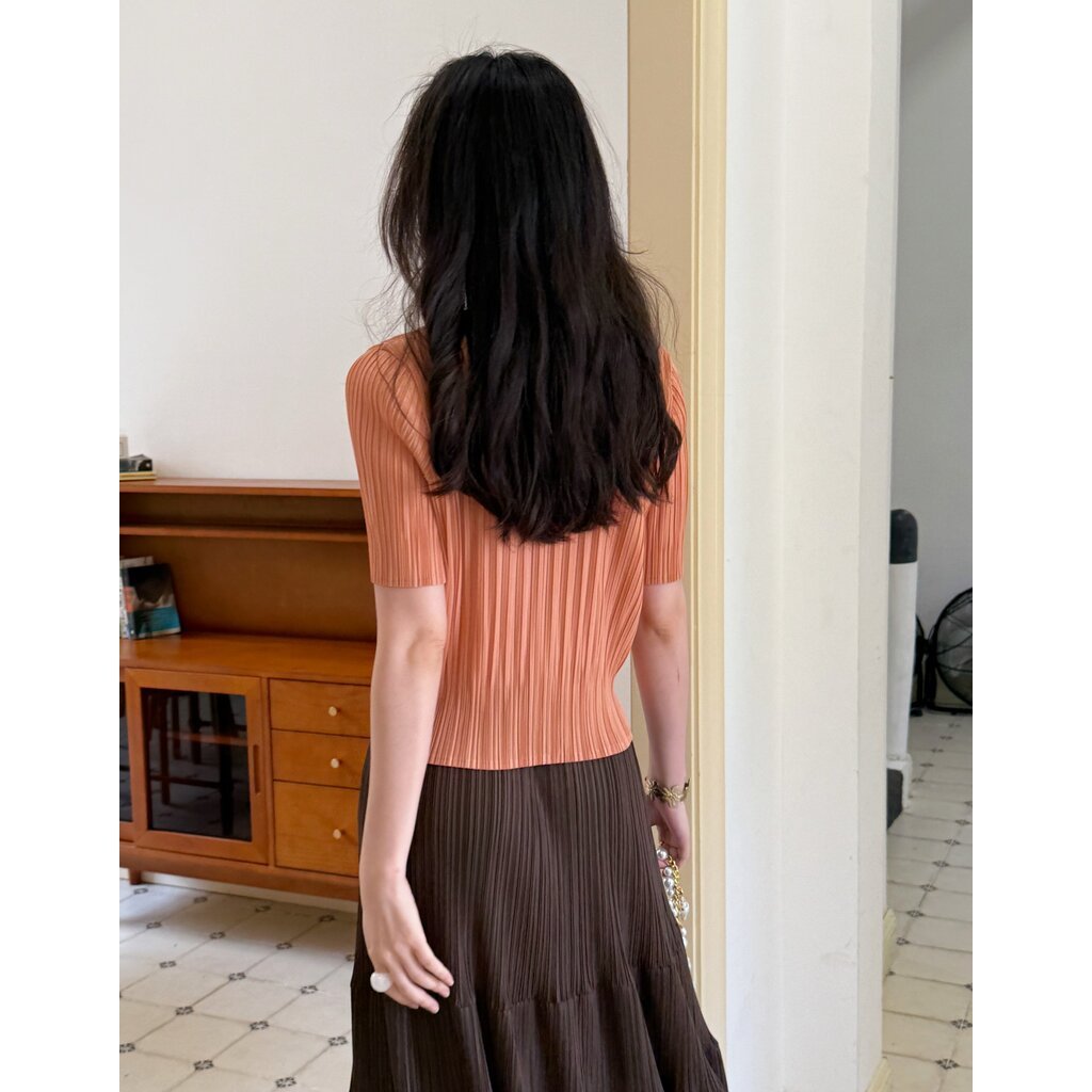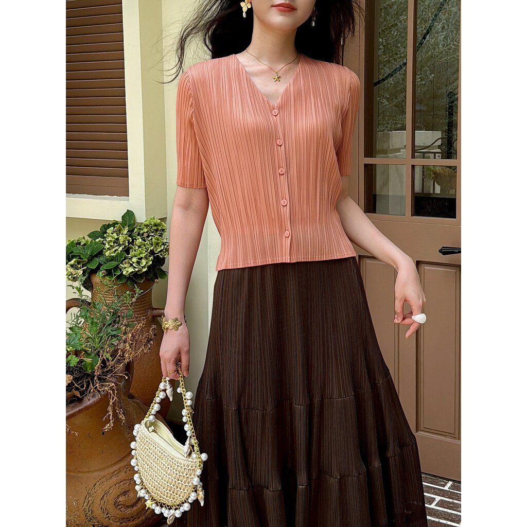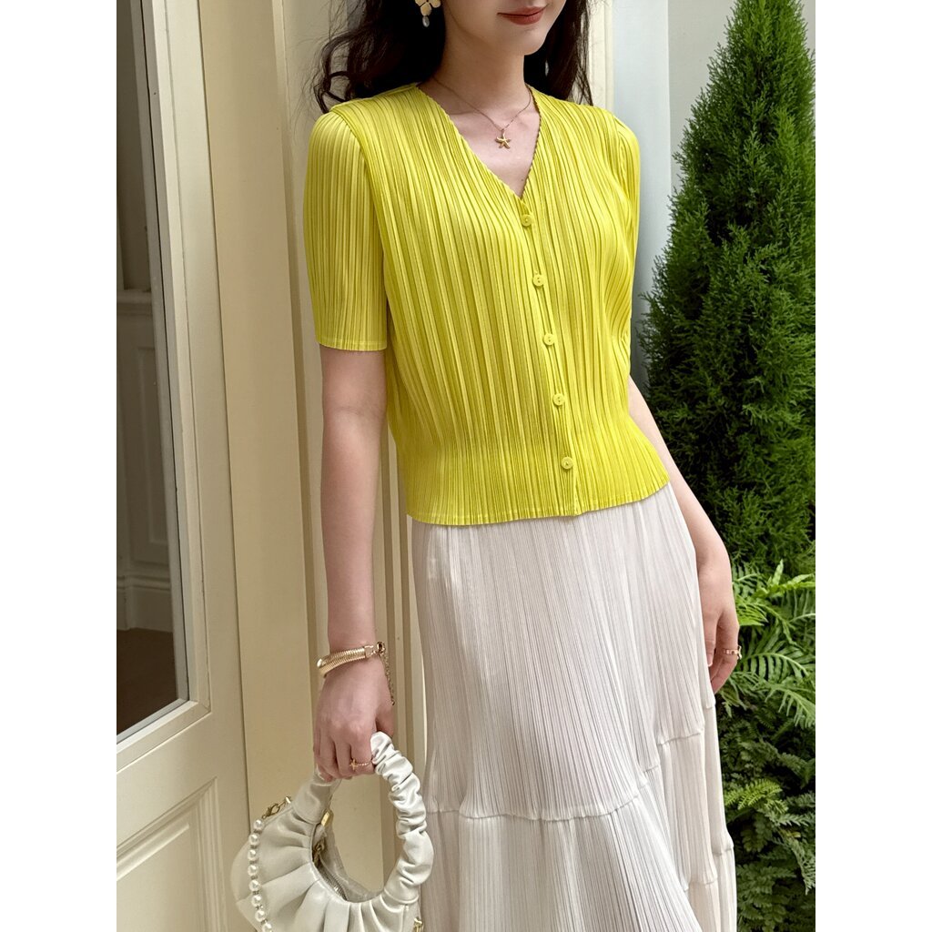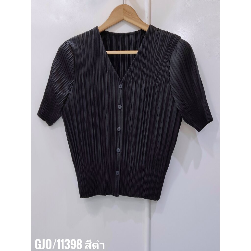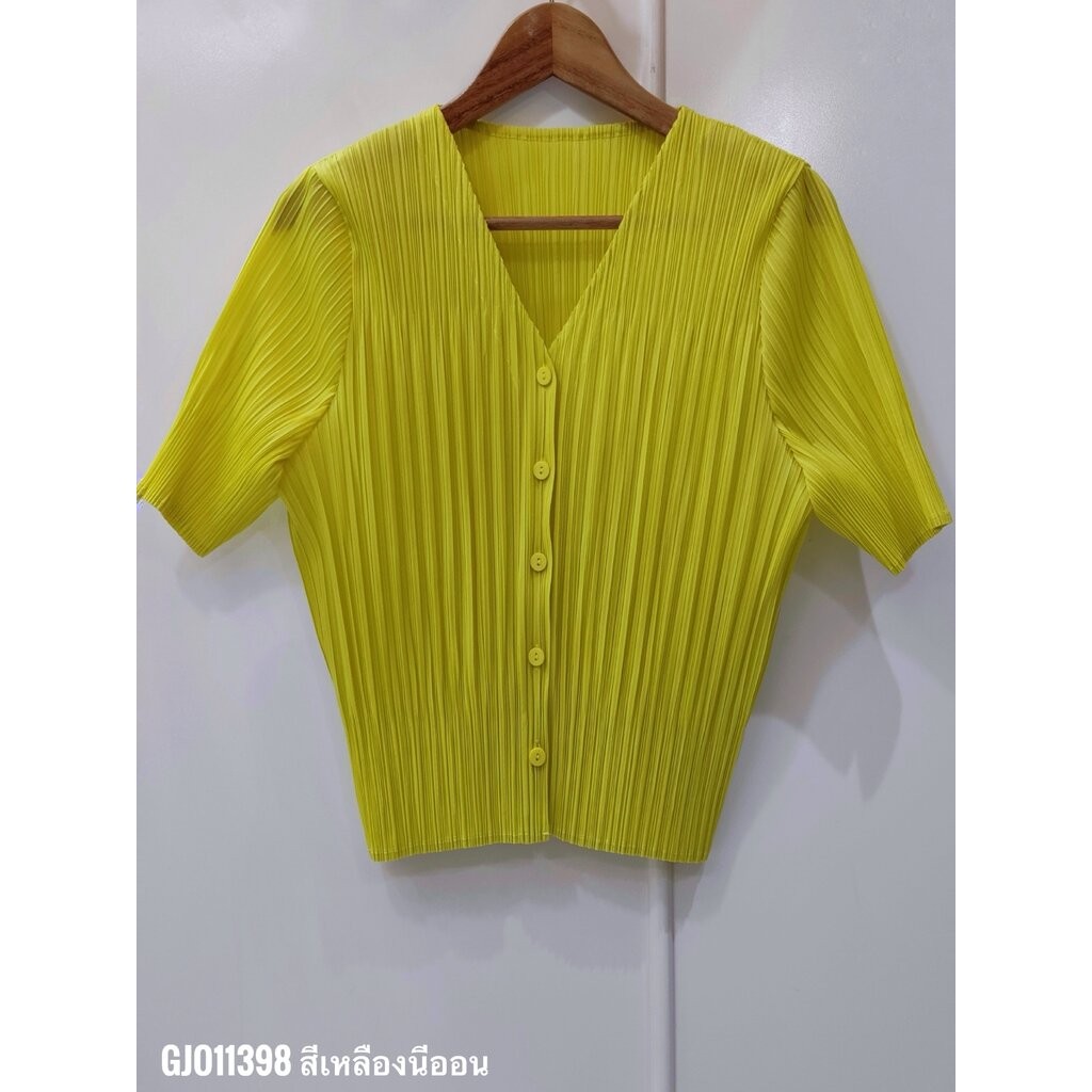 2MUAY รุ่น GJO11398 เสื้ออัดพลีท V NECK BUTTON FRONT PLEATED TOP 10 สี FREE SIZE