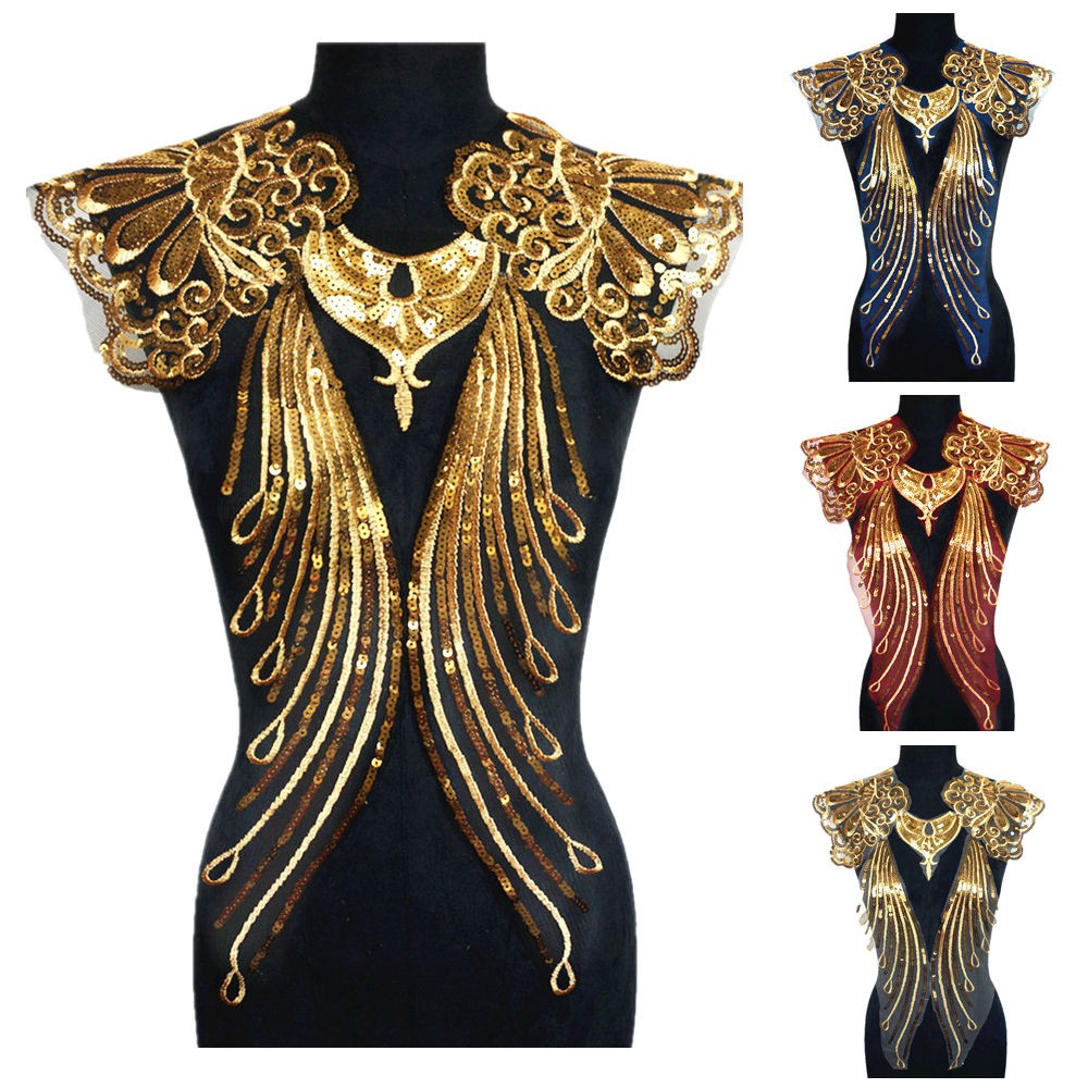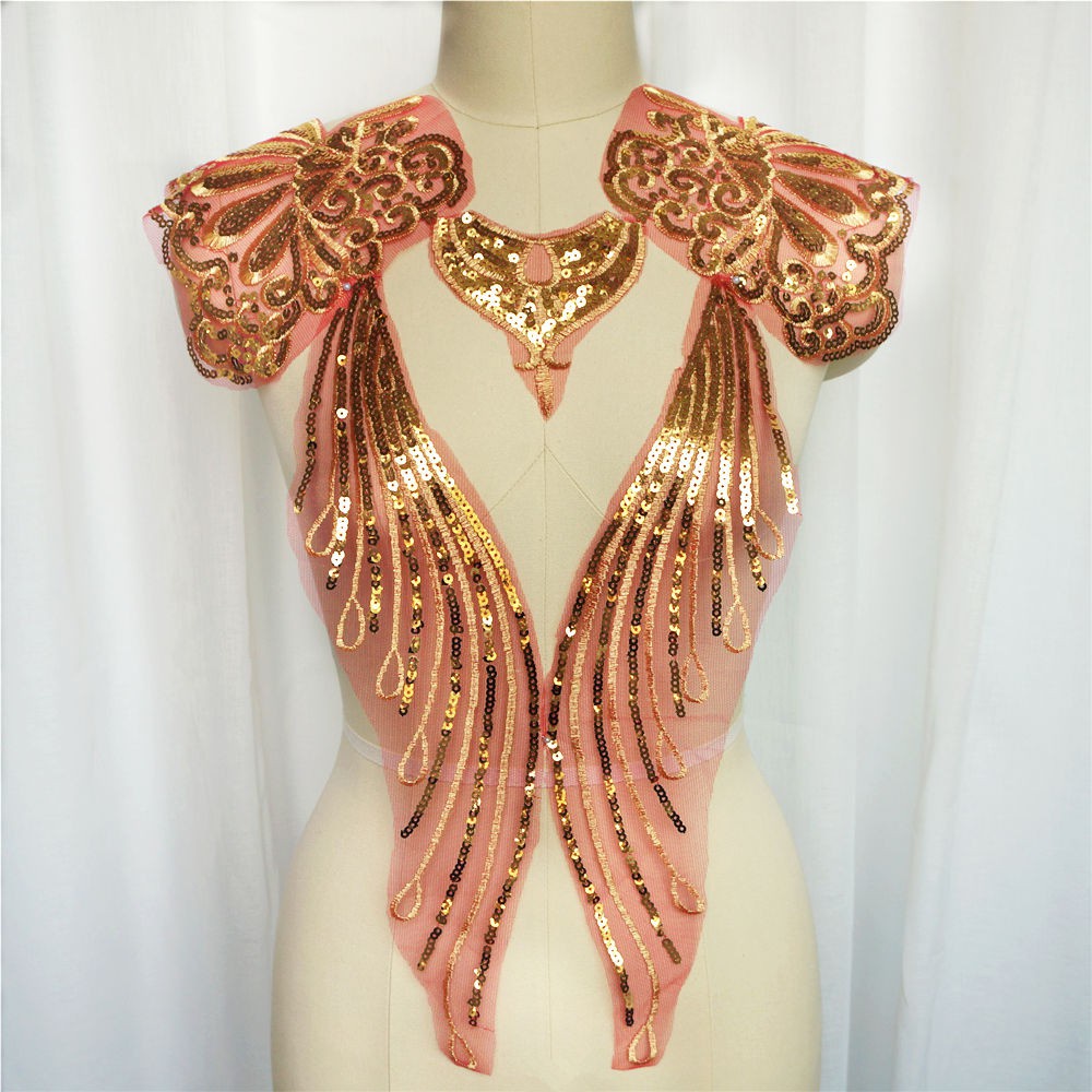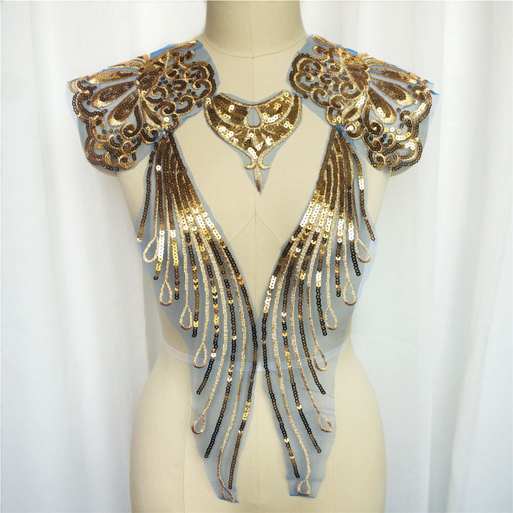 แผ่นปักทองเลื่อม ลูกไม้ ลายดอกไม้ สำหรับชุดเจ้าสาว DIY 1 เซต
