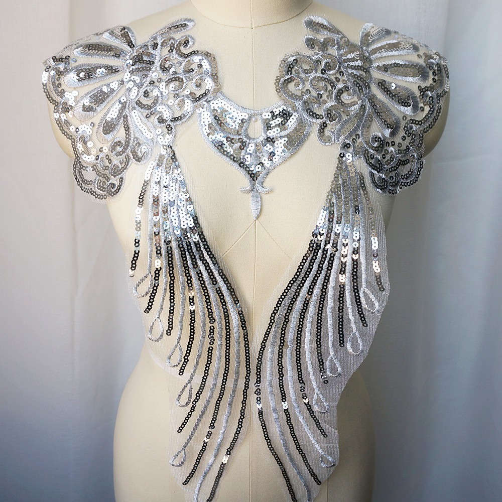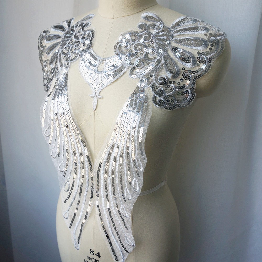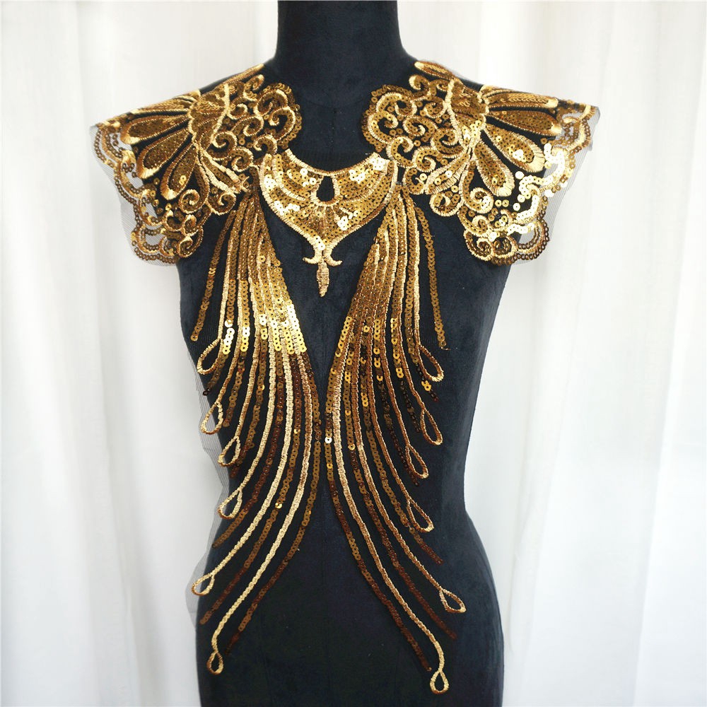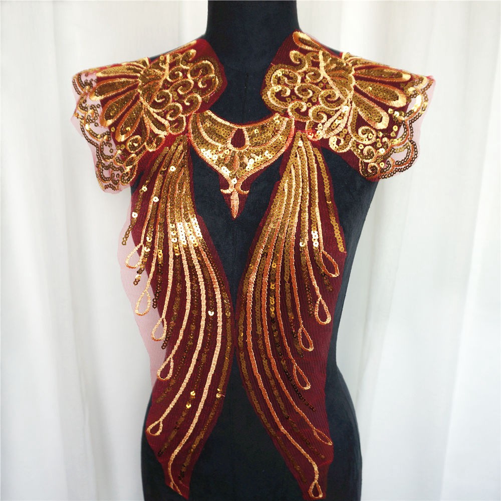 แผ่นปักทองเลื่อม ลูกไม้ ลายดอกไม้ สำหรับชุดเจ้าสาว DIY 1 เซต