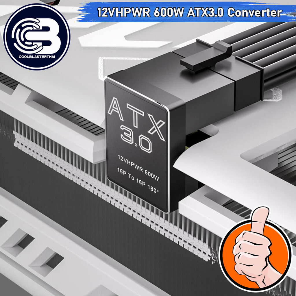 [CoolBlasterThai] Cable Management 16 Pin 12VHPWR ATX3.0 180 Degree Connector (REVERSE) BLACK