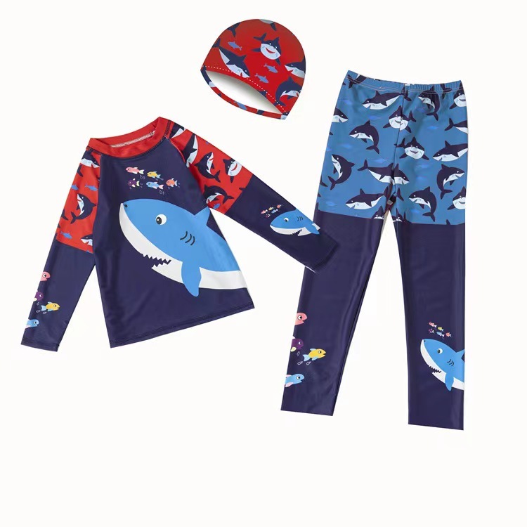 🥰ส่งจากไทย🥰 ชุดว่ายน้ำเด็กชาย พร ้อมหมวก 2-12 ปี F4