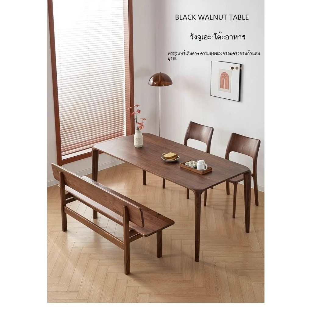 ไม้วอลนัทสีดำ โต๊ะอาหารสี่เหลี่ยม หรูหราเบาๆ สไตล์มินิมอล ครัวเรือนสมัยใหม่ โต๊ะอาหารไม้เนื้อแข็ง โต๊ะไม้เนื้อแข็ง ของตก