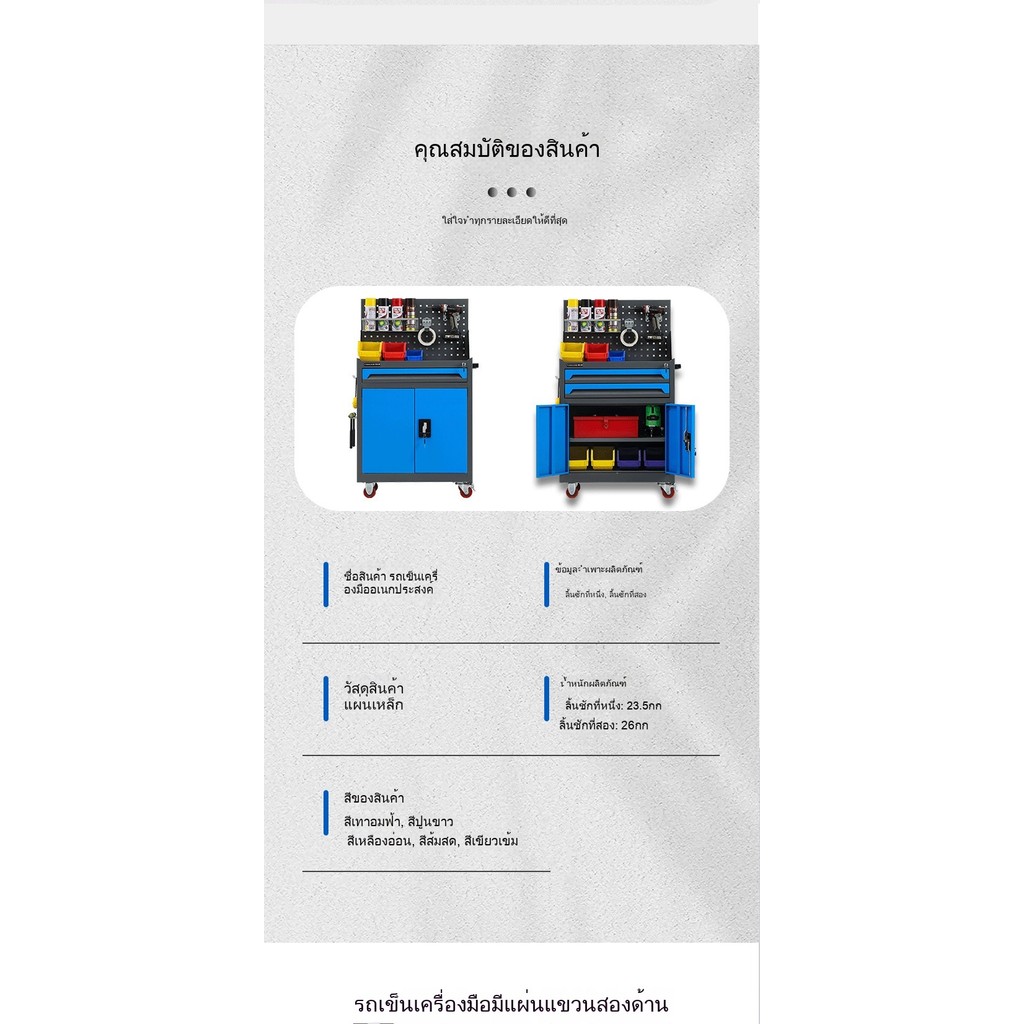 **รถเข็นเครื่องมือซ่อมรถ ลิ้นชักโลหะ อเนกประสงค์ เคลื่อนย้ายได้ ตู้เตี้ย สำหรับโรงงาน**