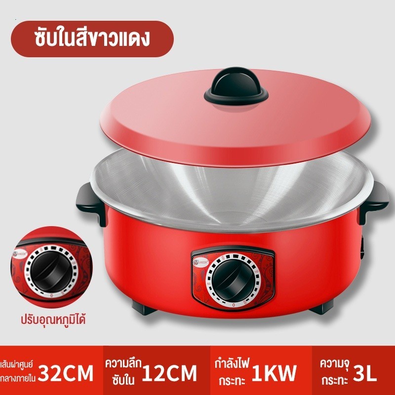 3L กระทะไฟฟ้า กระทะไฟฟ้าเคลือบสารกันติดอเนกประสงค์ 1000 วัตต์ ผัด ต้ม แกง ทอด