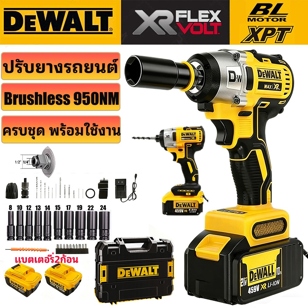 [100%ของแท้] DEWALT DCF887 บล็อกไร้สาย ประแจไฟฟ้าไร้สาย บล็อกไฟฟ้า 950NM Brushless ปรับยางรถ อุตสาหกรรม แบต2ก้อน