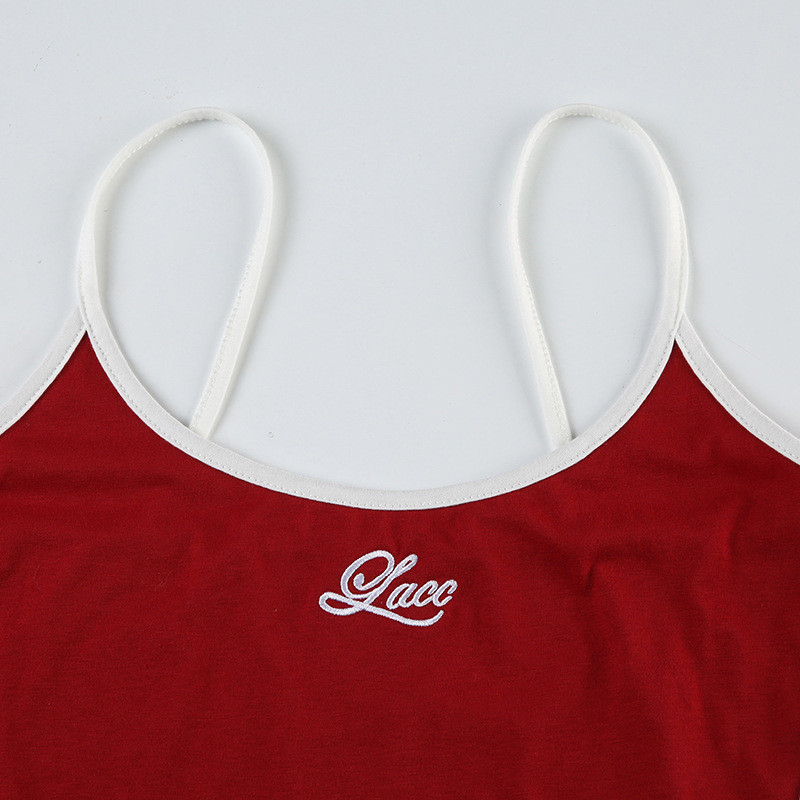 (Shipped from Thailand) Weania สี Contrast Patchwork Letter เย็บปักถักร้อย U คอสลิง Drawstring ลูกไม้กางเกงขาสั้นชุดลําลอง