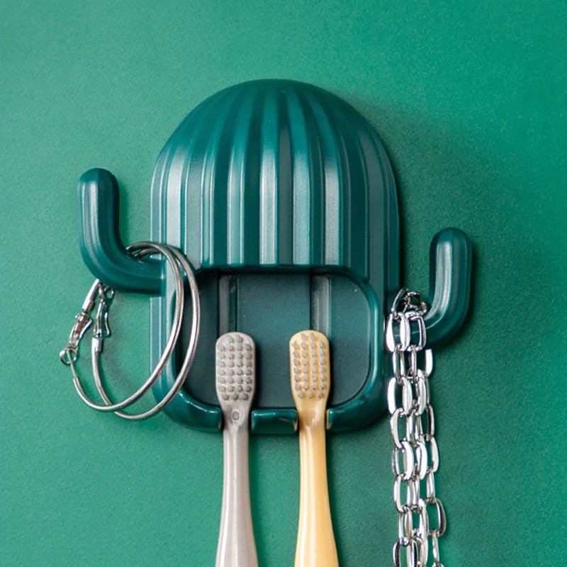 kingshopping (K21)ร้านไทย ที่เแขวนแปรงสีฟันรูปกระบองเพชร ติดผนัง ไม่ต้องเจาะ( ห้องน้ำ ที่แขวนแปรงสีฟัน)